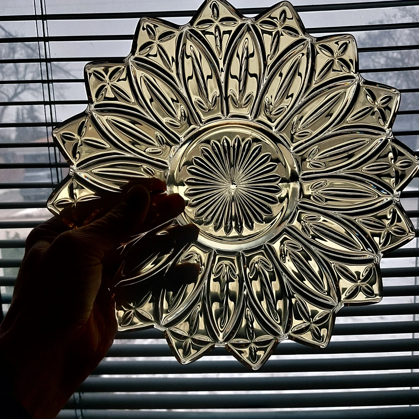 Amber Glass Sunflower Serving Dish