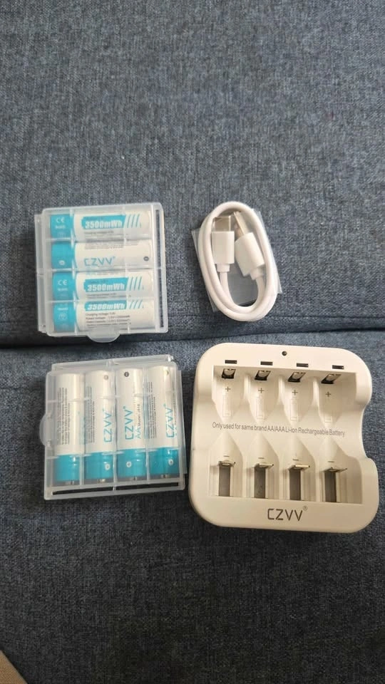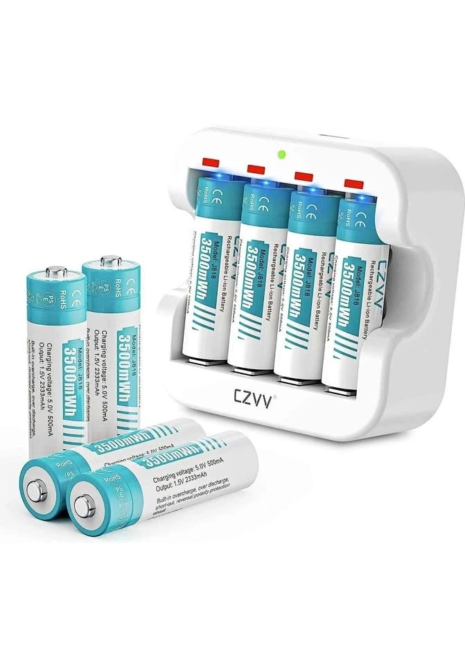 Efficient CZVV rechargeable battery set! Comes with 8 batteries, each outputting 1.5V. Charger can juice up batteries super quick, like 2 hours for a full charge. Plus, these batteries are good for 1300 charge cycles, helping reduce waste. Super handy for all your gadgets!