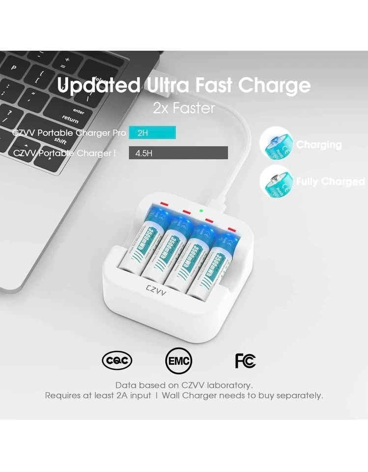 8 Pack 3500mWh Rechargeable Batteries with 4-Slot Fast Charger