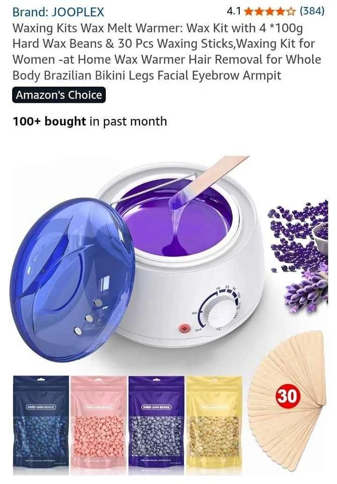 Waxing Kits Wax Warmer: Wax Kit Wax Hair Removal Kit with 4 * 100g Hard Wax Beads &30 Waxing Sticks,Waxing Kit for Women Men Whole Body Brazlan/Bikini/Eyebrows/Face -Hair Removal Wax at Home (White)