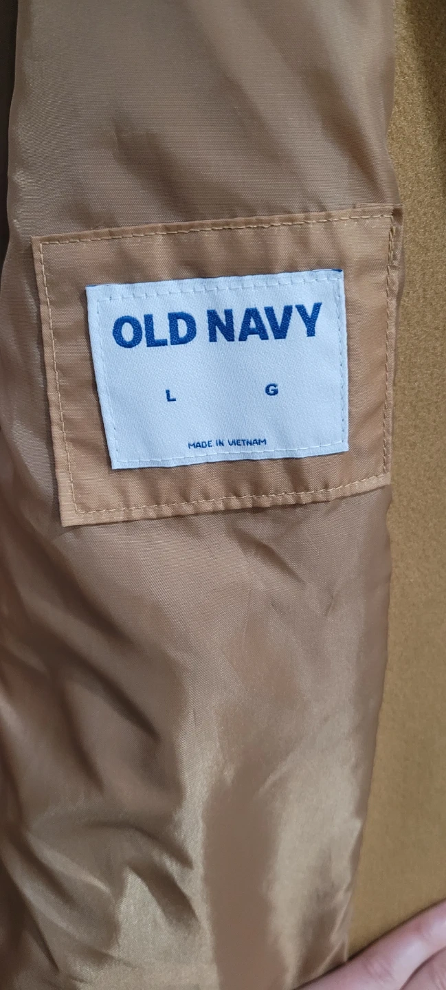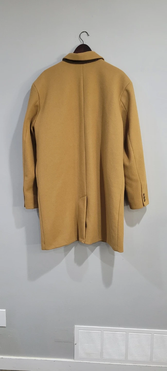 Classic camel coloured topcoat from Old Navy. It's a size large and made from a wool blend. This coat is great for layering over a suit or casual wear during cooler weather.