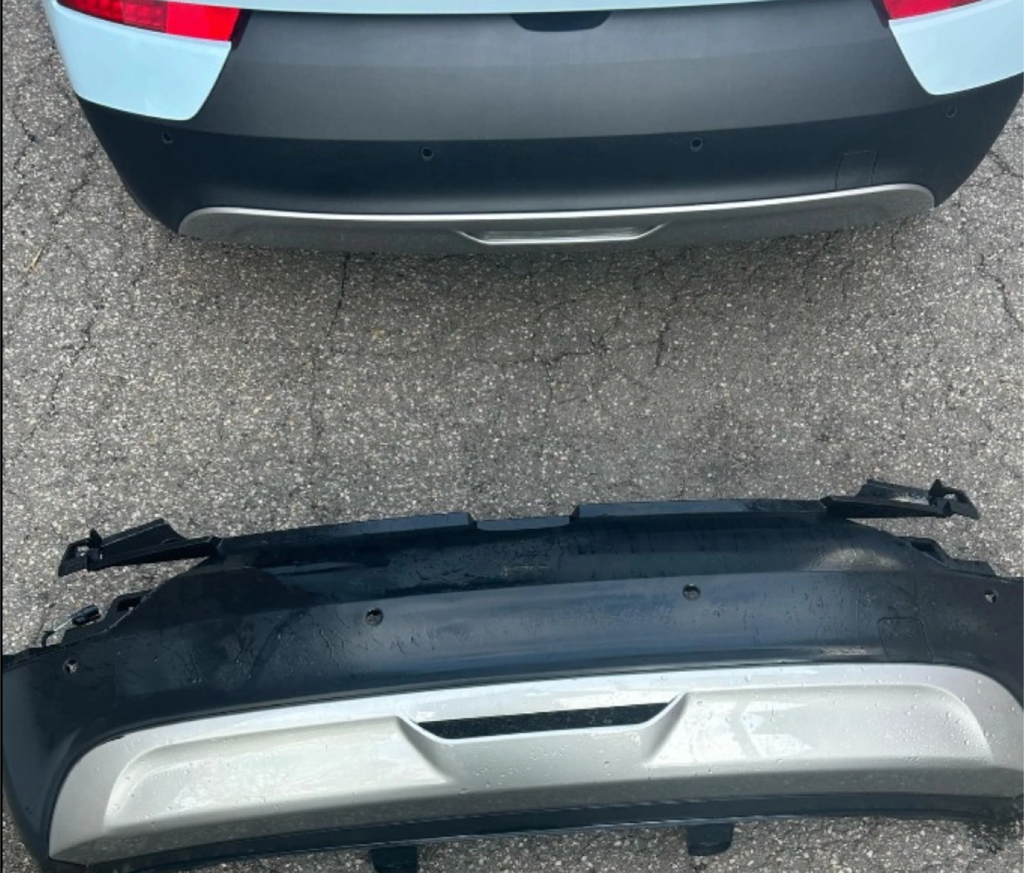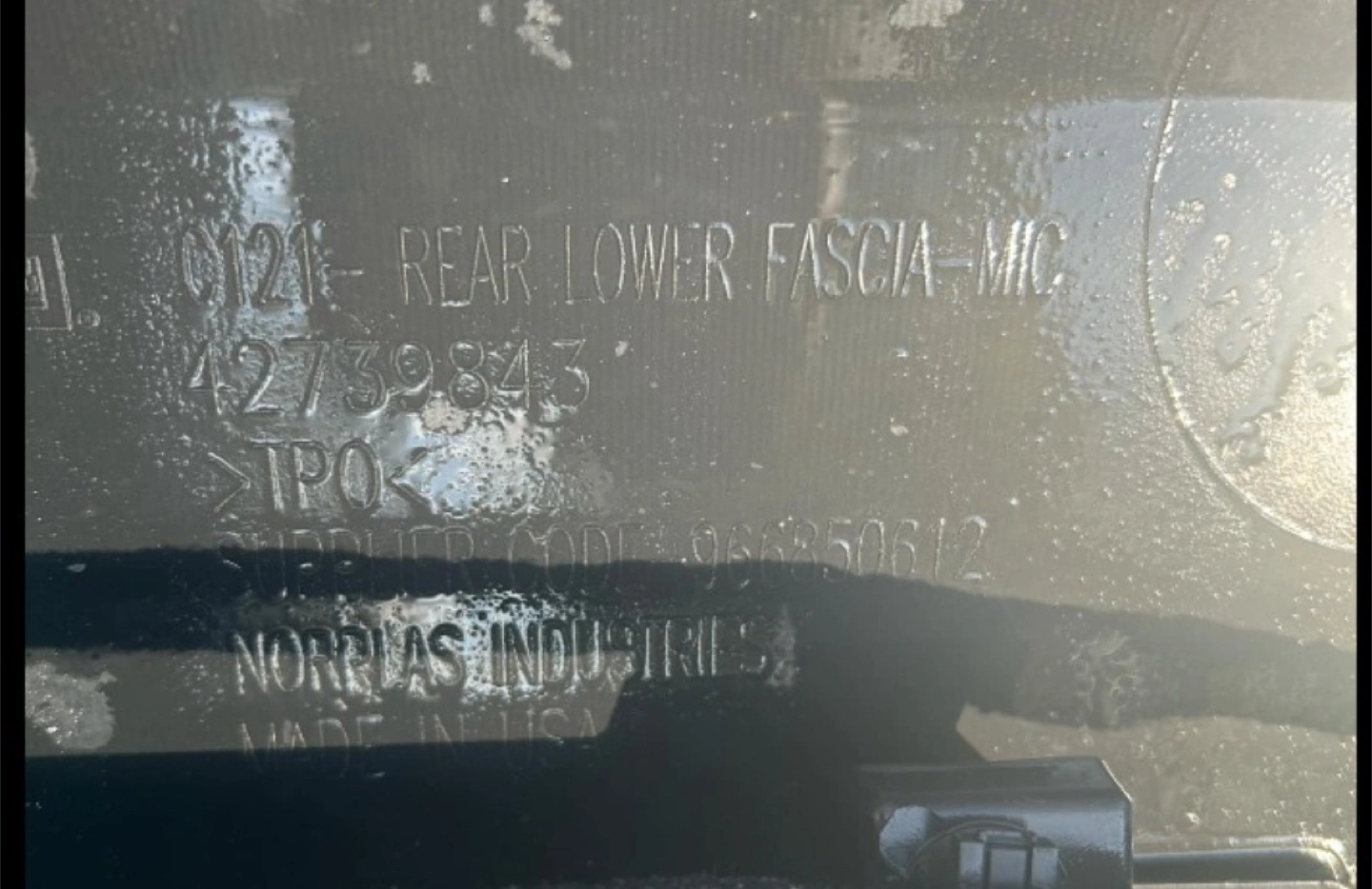 Used rear lower fascia bumper for a 2023 Chevrolet Bolt EUV, in good condition with normal wear from use.
