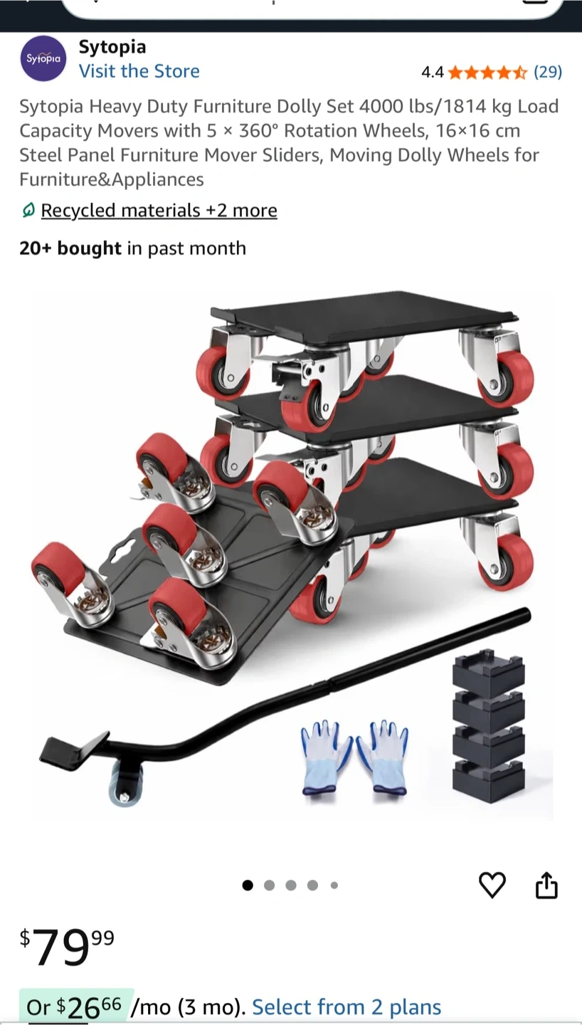 Sytopia Heavy Duty Furniture Dolly Set with Pry Bar