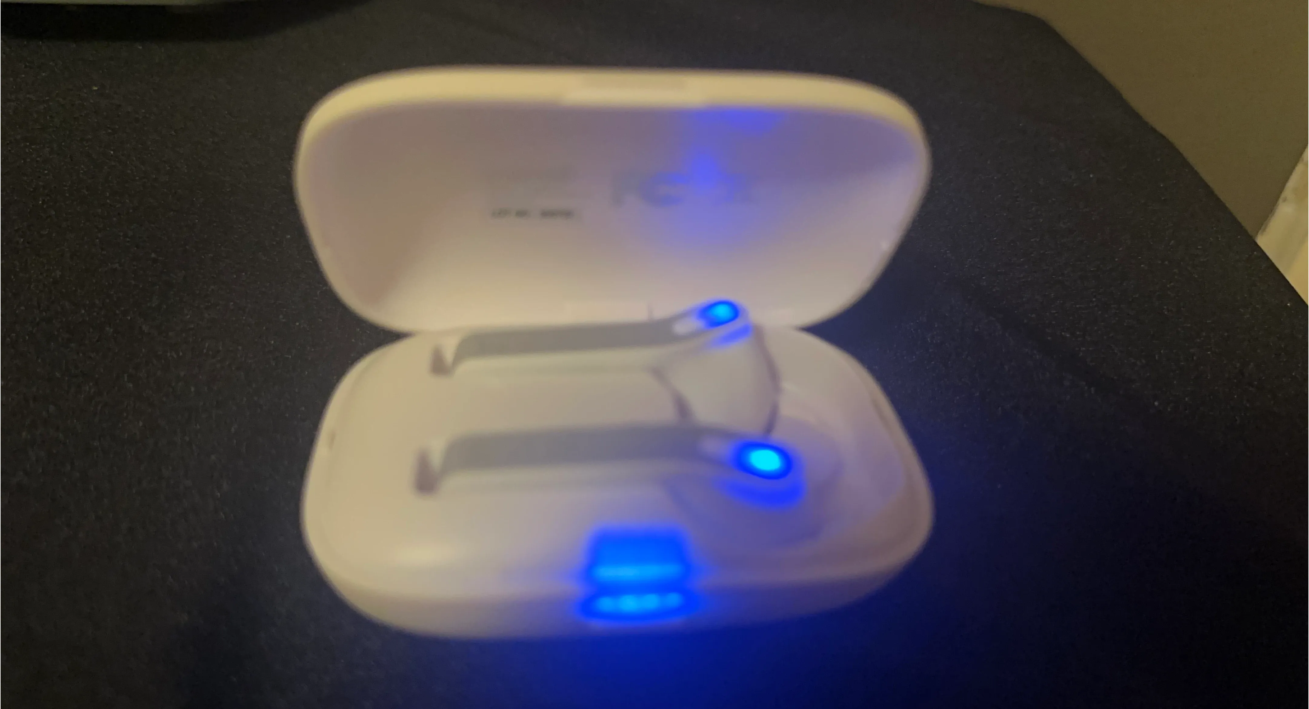 White wireless earbuds by Trek. They come with a compact charging case. Includes original box and charging cable.