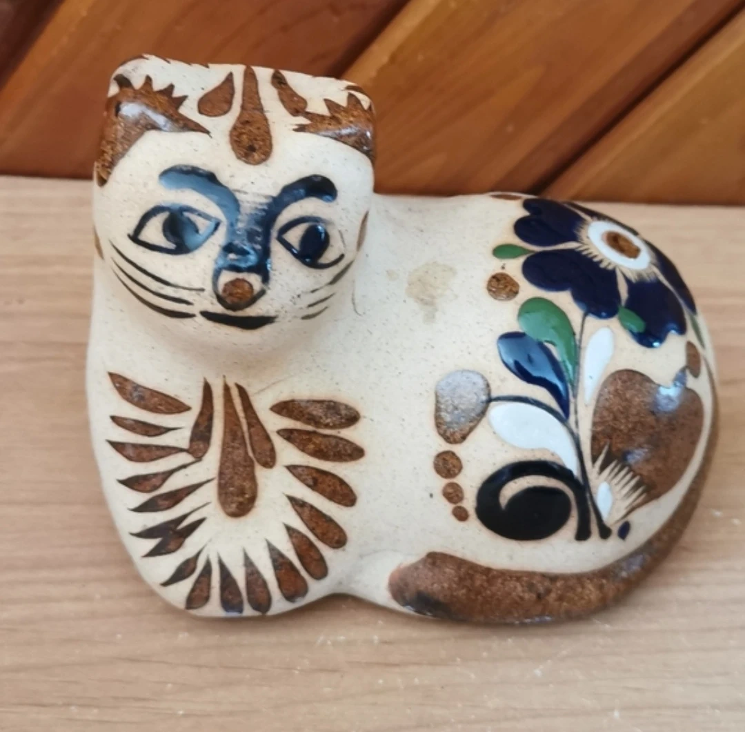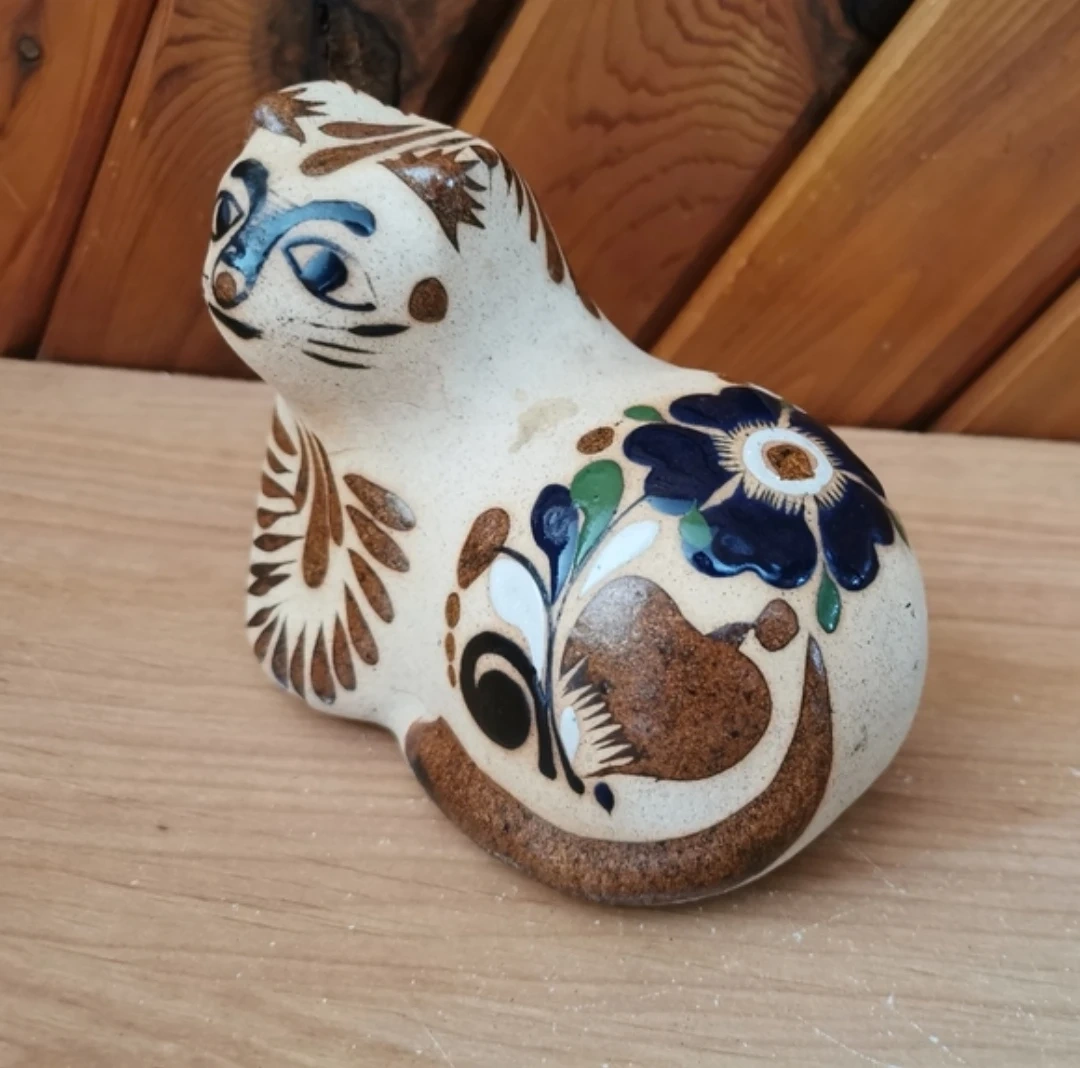 Vintage Tonalá Mexican Pottery Cat – Hand Painted Folk Art Ceramic