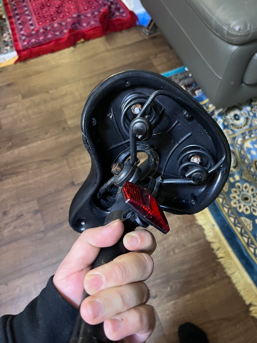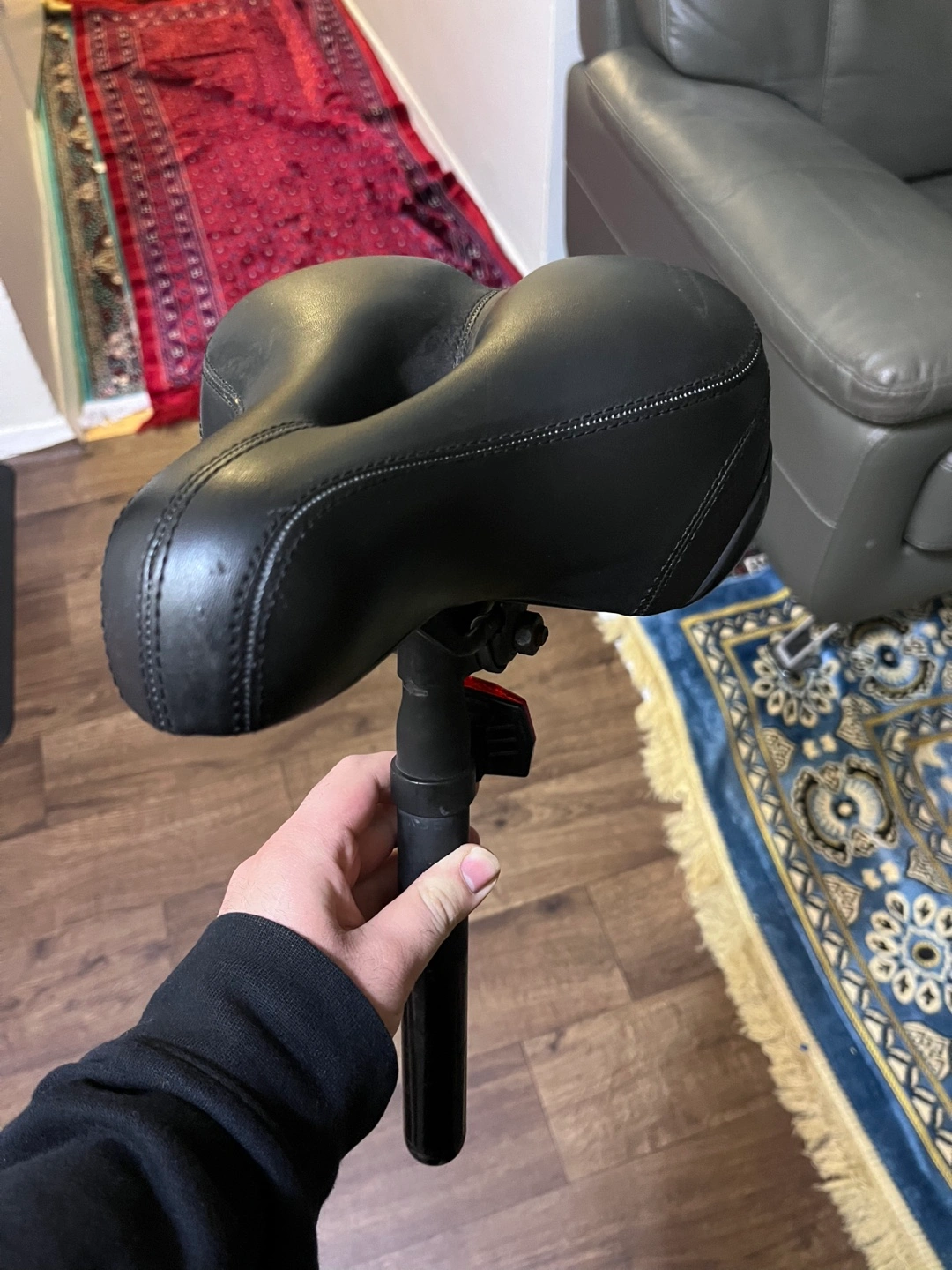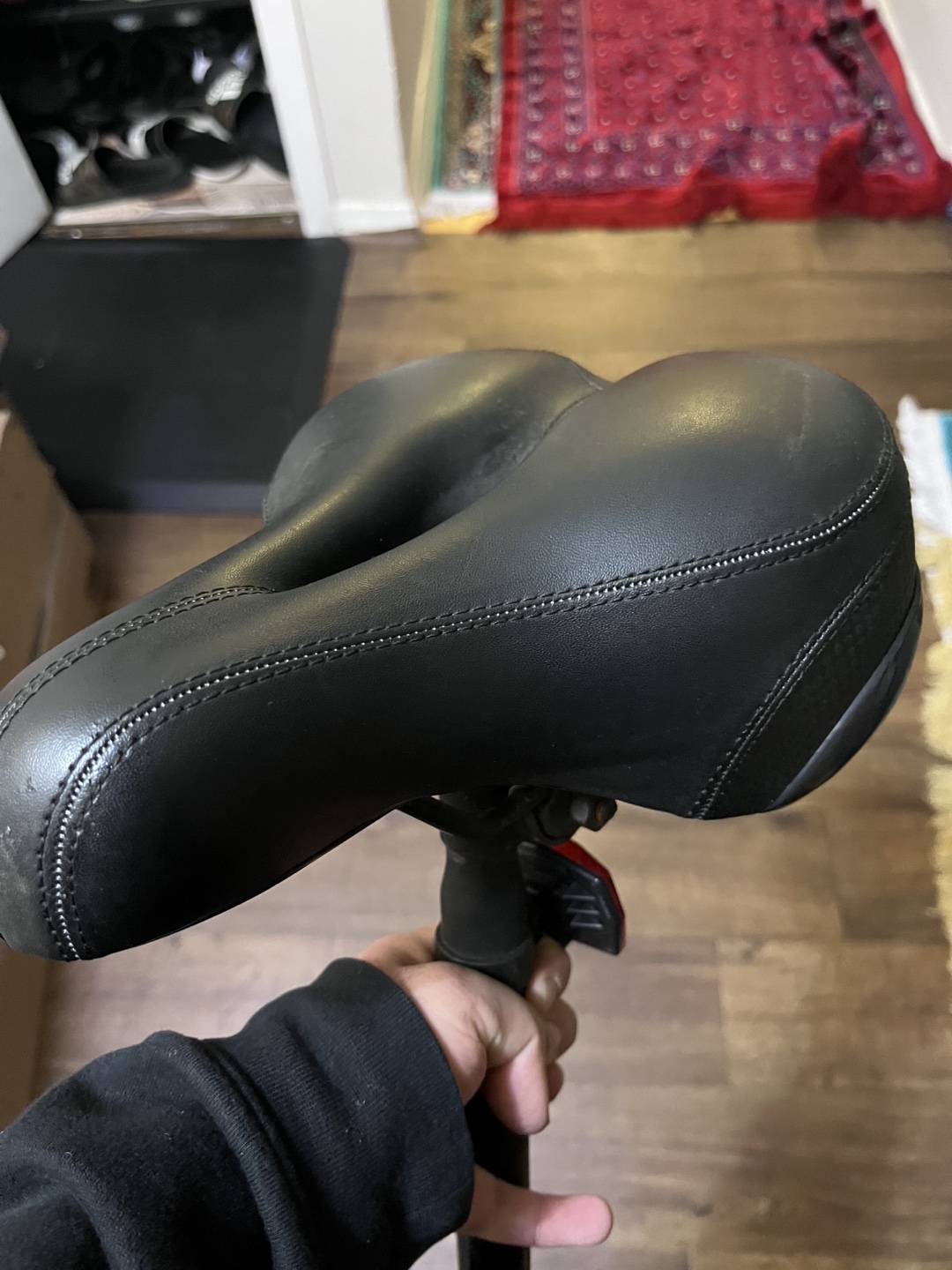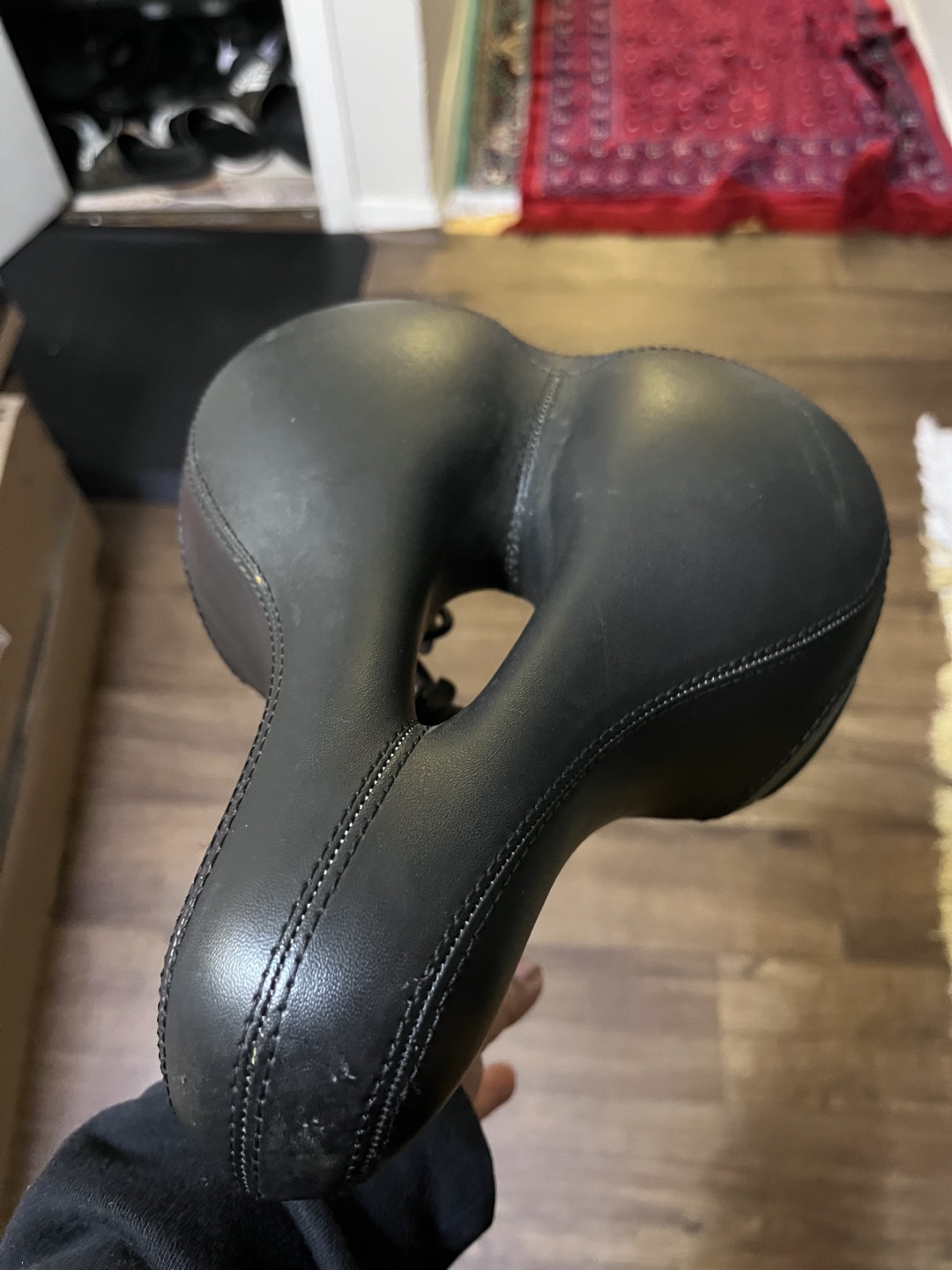 Selling a bicycle seat with pole in good condition. It's black and has a unique shape for comfort. Wide foam Perfect if you're looking to replace your current seat or upgrade
