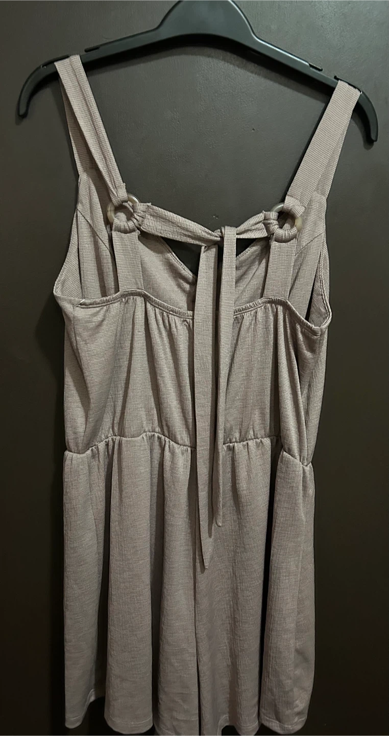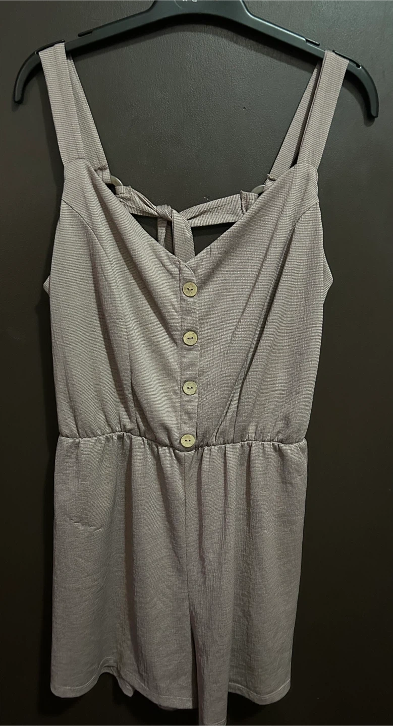 Selling a cute romper in a neutral colour. It's a size large and features a button-down front with a tie back. Perfect for summer! its brand new…