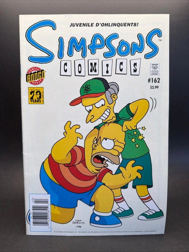 Dive into the hilarious world of Springfield with this Simpsons Comics #162, featuring juvenile d'ohlinquents! This is a previously enjoyed comic book, so it has been read, but is still in good shape for any collector or fan of the series. If this ad is still up, yes, it's still available! Don't miss out on adding this gem to your collection! Cash accepted.