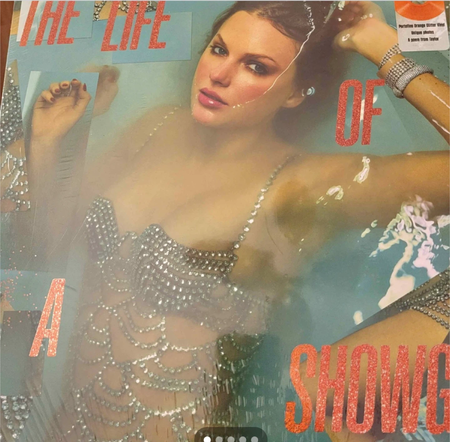 Selling a Taylor Swift vinyl record, titled 'The Life Of A Showgirl'! It features a Portofino Orange Glitter Vinyl and unique photos. A poem from Taylor is also included!