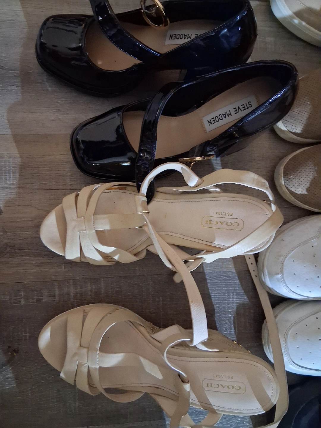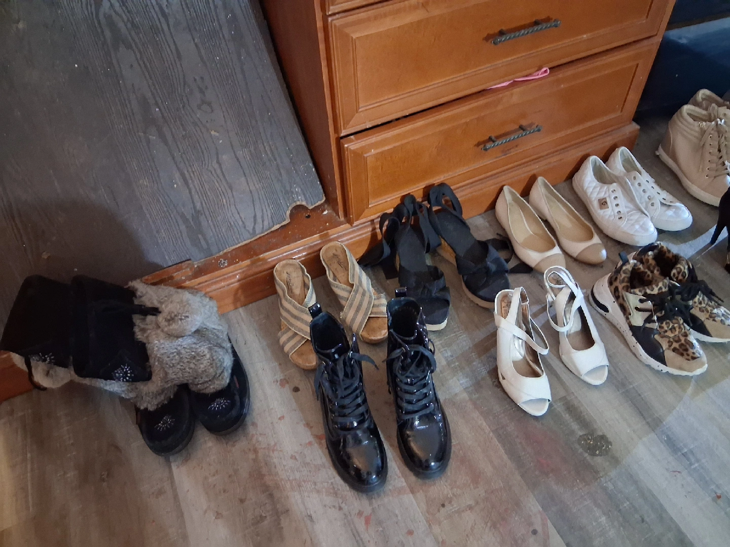 83shoes witch ones be specific when texting about the shoes usually$ 50 each but will go as far as$ 25 for some depending on witch ones I'm selling a pair of Michael Kors knee high boots. They are a light beige colour and made of suede. They have a chunky heels including every pair of shoes in pictures just msgs for prices cuz they vary. SOLD. 10$ The black nike high tops SOLD10$ for the white guess shoes both including no laces SOLD$10 the white high tops, with no name including with laces. 7785355957 txt call anytime!!!