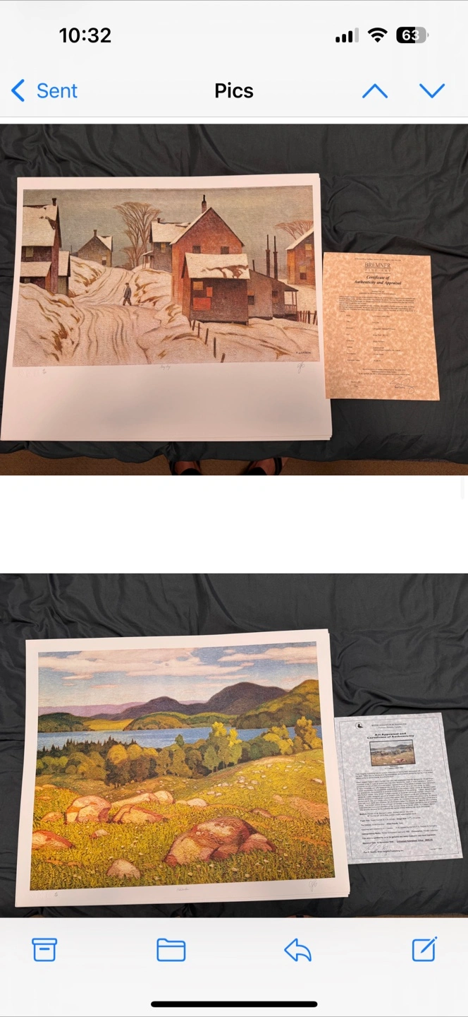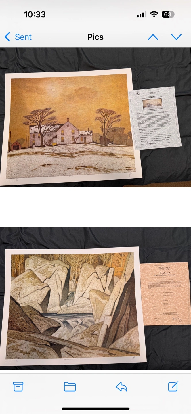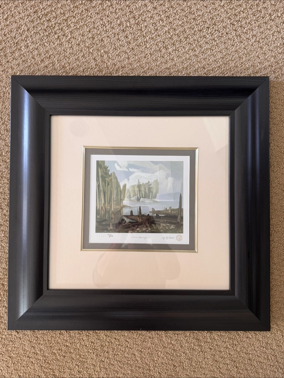 Selling an A.J. Casson painting featuring a serene forest edge scene, this linoleum block print, titled 'Forest Edge' is numbered 69/150 and bears Casson's own hand signature, perfect for art collectors. This piece comes with a certificate of authenticity from River Heights Publishing Inc. and a detailed appraisal document. * Medium: Printed on M\" Neutral PH 100% Rag custom made paper * Paper Size: 15 ½" x 13 ½ inches * Image Size: 11 ½" x 8" inches * Edition: One Hundred & Fifty * Artist Proofs: Fifteen * Provenance: The Estate It's been appraised for $3000 unframed in 1996! Add a touch of Canadian artistry to your space with this unique piece. Please note that while this painting is a pre-loved treasure, its beauty remains timeless. If you're reading this, the painting is still available! I have other prints if interested!
