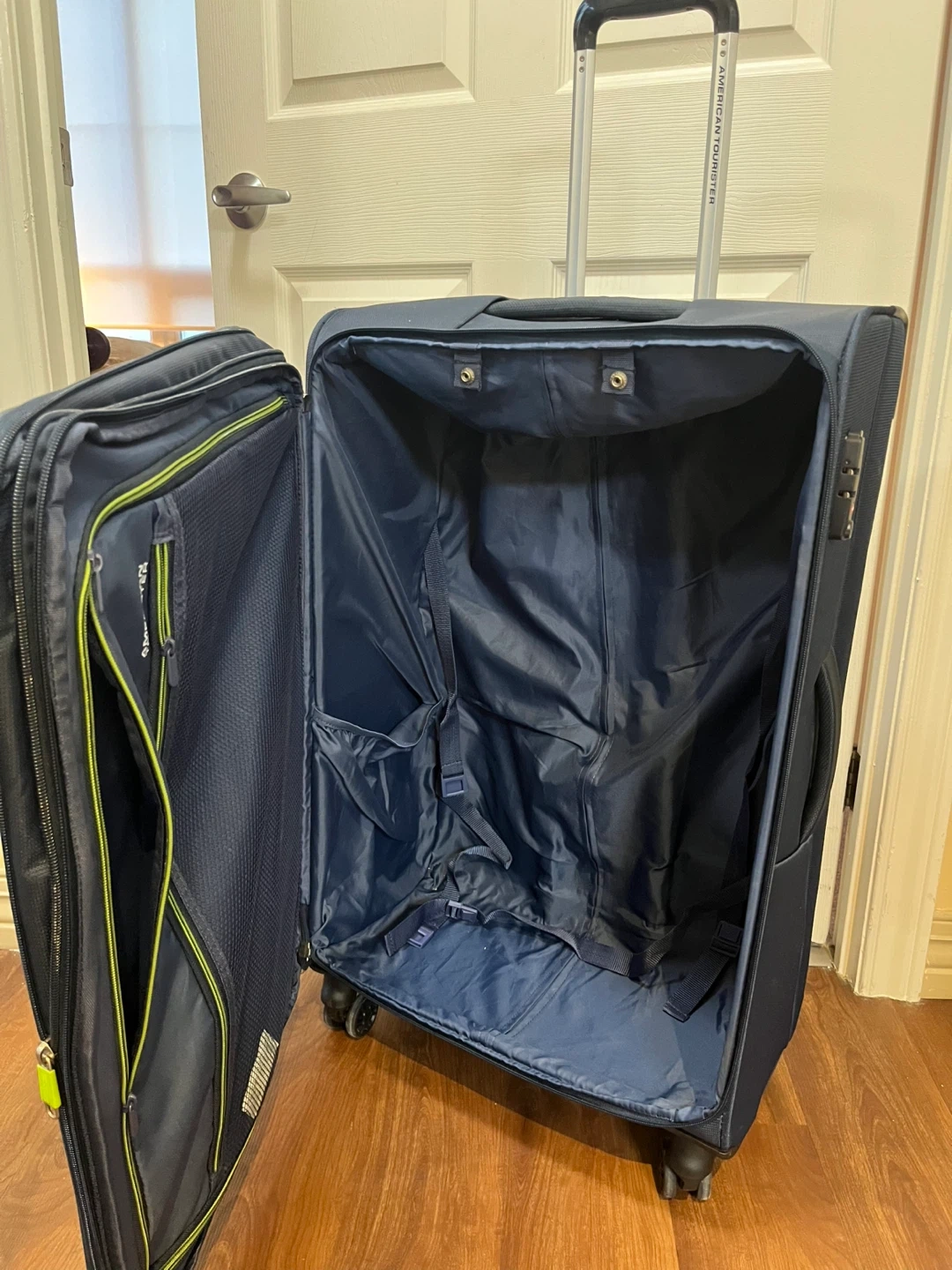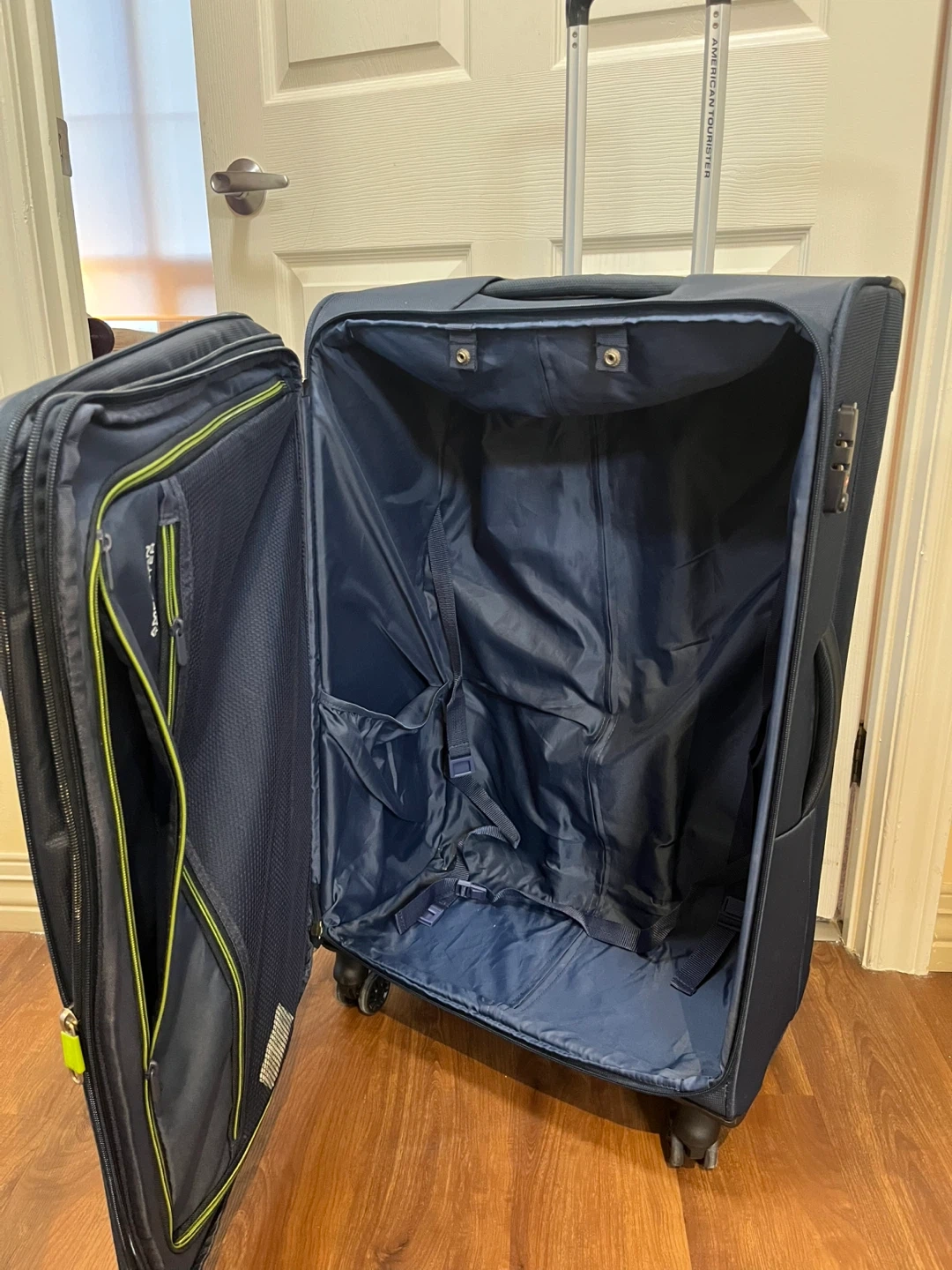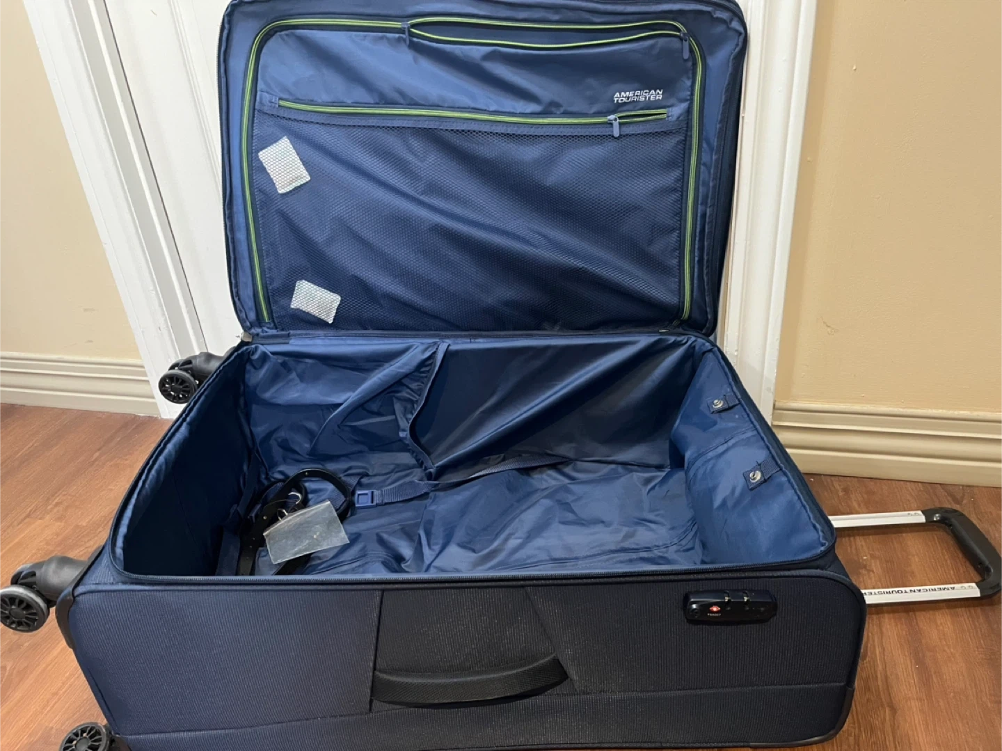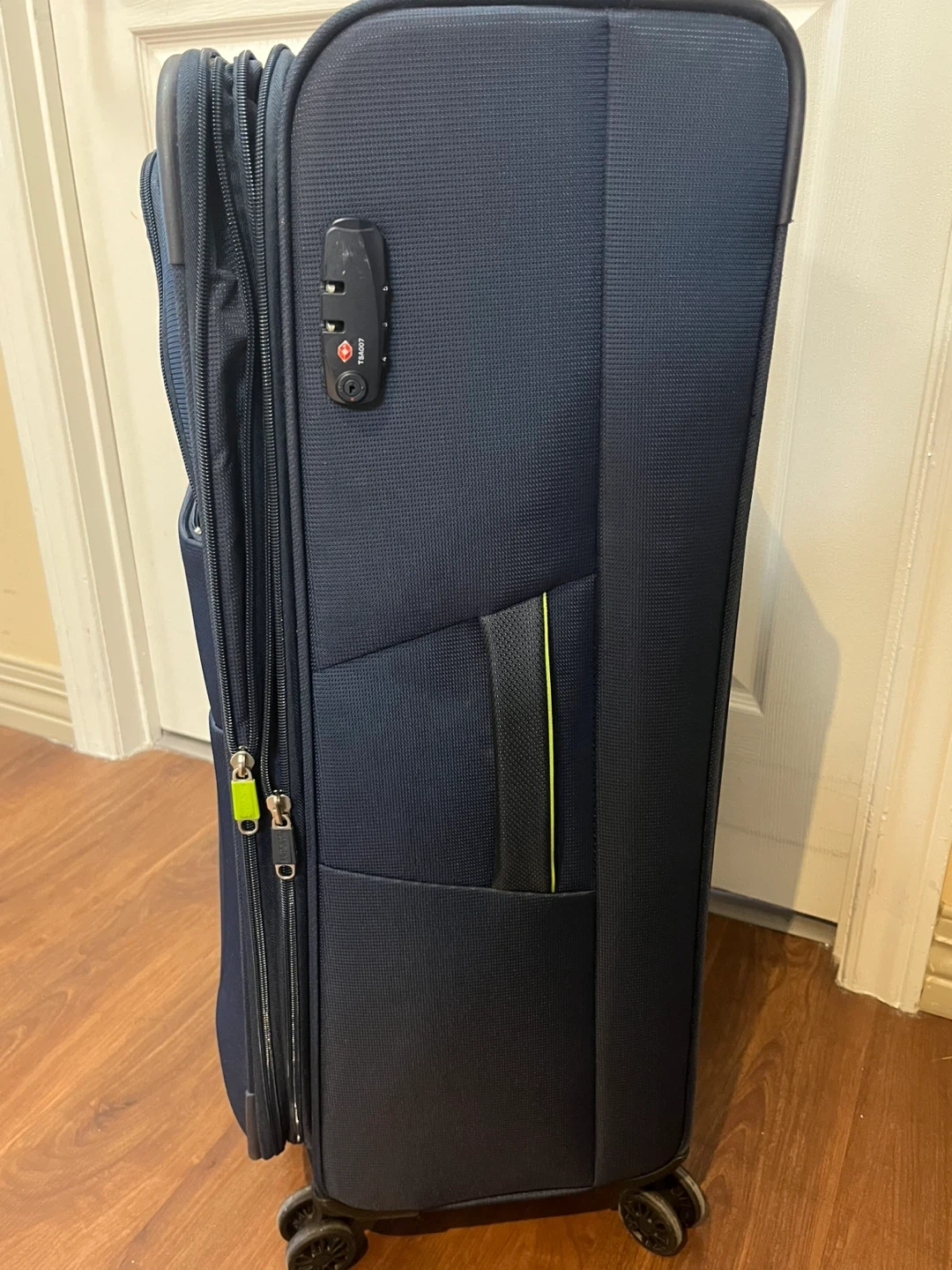 24Looking to sell my American Tourister suitcase. It's in great shape and ready for your next adventure! The suitcase is a nice dark blue colour and features an expandable design for extra packing space. It has a TSA lock for added security and smooth-rolling wheels to make travelling a breeze (Used once)