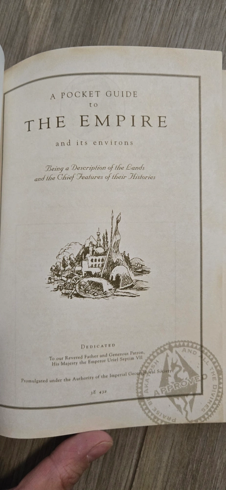 168Selling 'A Pocket Guide to the Empire and its environs' book. Came with the collector's edition of Oblivion back in 2006 printed with the POV of an in-universe book. Barely handled and in practically new condition. Great for any Elder Scrolls fans! Hard to find, though occasionally pops up on ebay or Amazon for anywhere from $50-100+