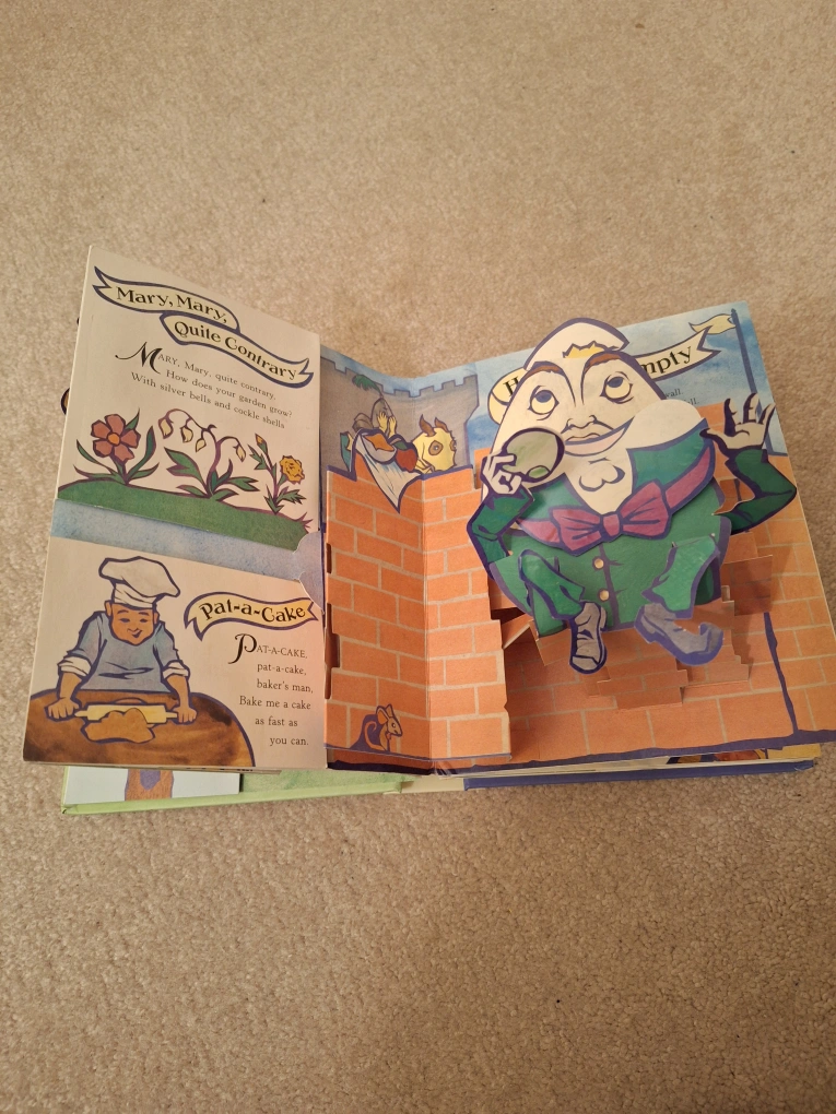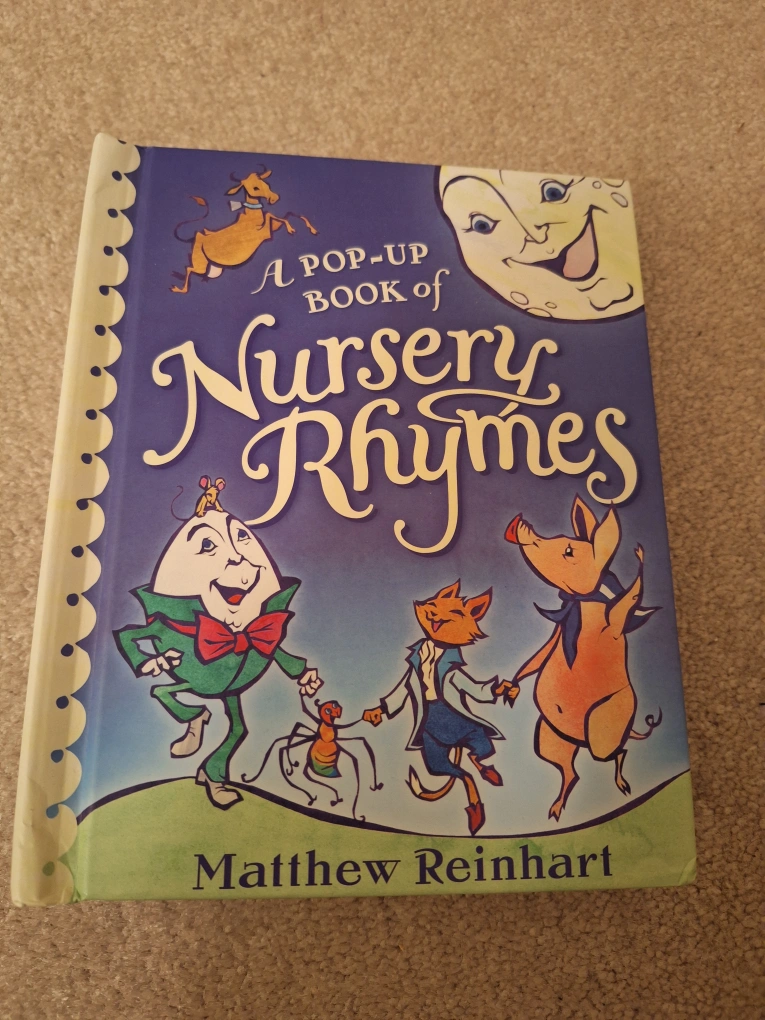 116Selling a copy of "A Pop-Up Book of Nursery Rhymes" by Matthew Reinhart! It's a delightful book with intricate pop-up illustrations that bring classic nursery rhymes to life. Perfect for kids and collectors alike! It includes rhymes like: Hey Diddle Diddle, The Itsy Bitsy Spider, Baa Baa Black Sheep, and more! In excellent condition!