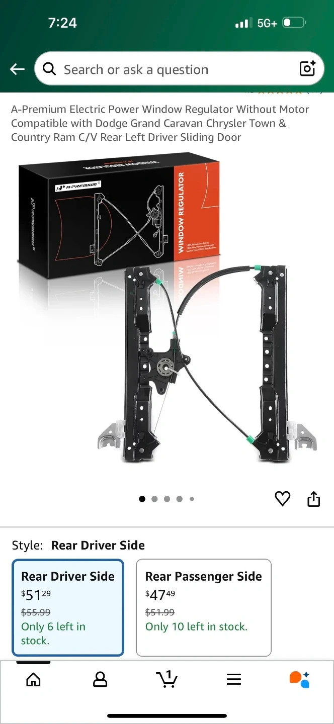 60π !!! Free Delivery!!! !!!Look last picture!!! Buy 100$+ blue zone free !!! Buy 250$+ yellow zone free !!! Selling an A-Premium electric power window regulator. This regulator is designed for the rear driver side of specific Dodge, Grand Caravan, Chrysler Town & Country, and Ram C/V models. It comes in its original box and appears to be in great condition!