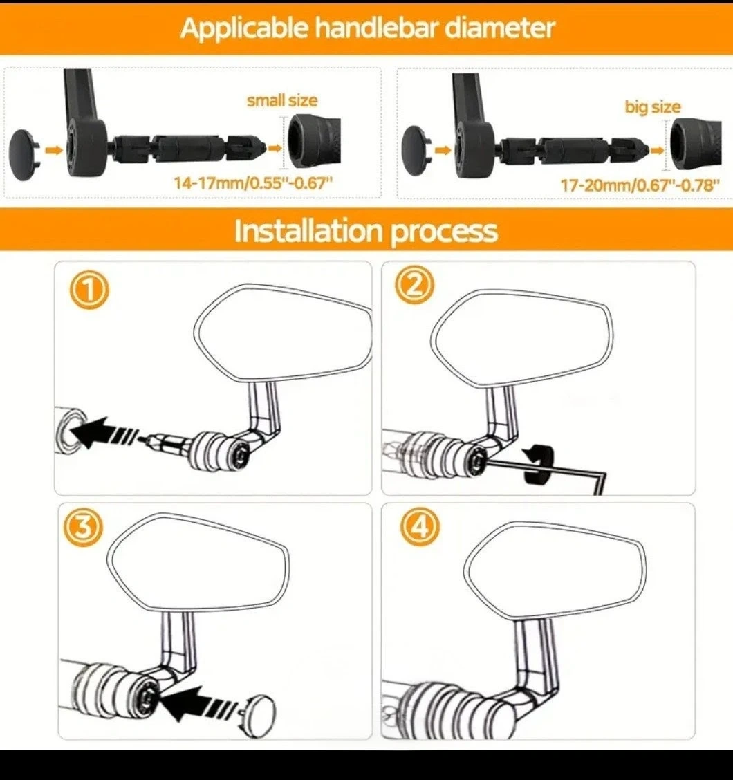 291100% Works, 100% New, $30 A Set of Bicycle Rearview Mirrors (Left and Right) Bike Rear View Mirrors with Quick-Install Mounts, Convex Lens for Rearview - Compatible with Road, Mountain, Hybrid Bicycles - Cycling Safety Gift for Cyclists (Father's Day, Birthday) - Durable Construction, Bicycle Accessories, Hexagonal Mirror Design, Sturdy Construction, Bike Accessories, Compact Design, Highquality Lens, Bike Commuters High resolution glass for a clear view Microconvex mirror, wide angle view Chic and stylish Mirrior Handle fixure Inner diameter 14-17mm(0.55-0.87inch)/17-20mm (0.67-0.78inch) ####### First Come First Serve, No holding for anyone who says I am comimg to getl it. Only for serious buyer. What You See Is What You Get (WYSWYG) Sold AS IS condition and no return policy after the point of check out. Accept CASH only AND face to face trade ONLY. DO NOT accept PayPal or e-cheque! If ( you are a Scammer, please stay away from me by God's sake! Jesus Christ is God and can be your saviour too.) Location to pick up: (use Google Map copy and paste the below corrdinates to come): 43.806683,-79.456018 Or search by address: 735 New Westminster Drive #88, Thornhill, ON,L4J 7Y9 (***please noticed that I am not living at unit #88, but there is a small parking area next to an entrance of a basement carpark, I need to walk out there to meet you in 2 mins***) Or use this link in Google Chrome and then allows Google Map Apps to lead you to come: https://maps.app.goo.gl/iybEFxbi3cHE7RqJA Please click into my profile listings to see which may also fit your needs. Scammer: God Jesus Christ protects me! HE can be your saviour too if you repent and return to God TODAY!