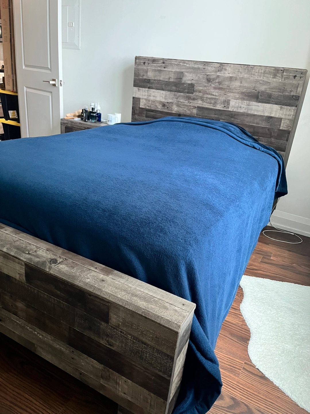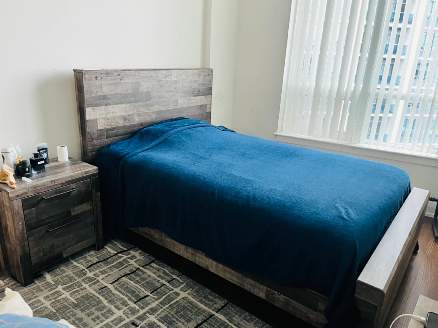 A Twin bed, Rustic Nightstand with Drawers