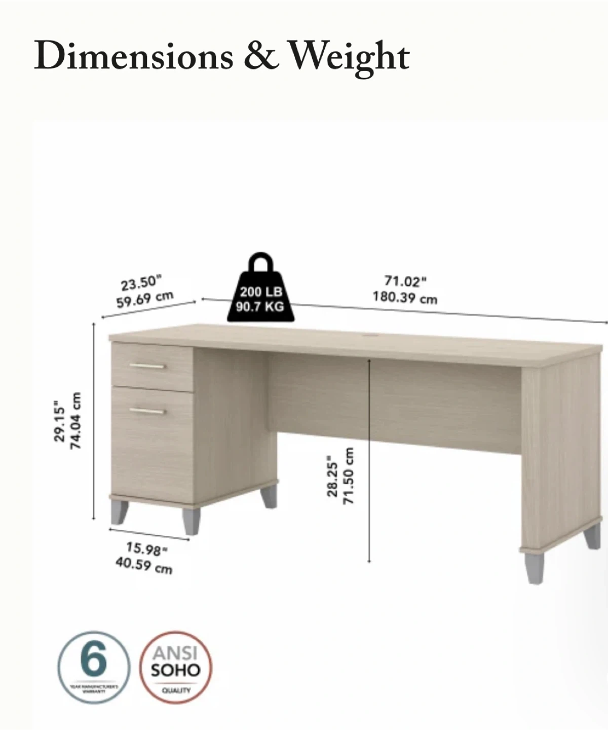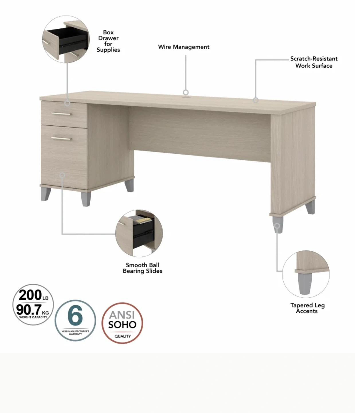 • Box drawer provides storage for office supplies and utensils