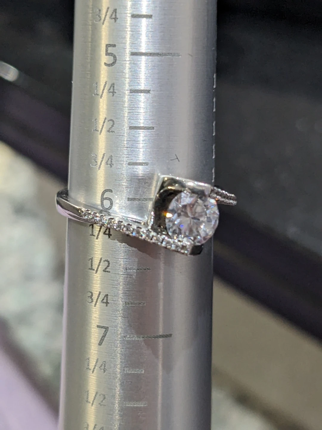 Size 6 Sterling Silver and Cubic Zirconia Bypass Ring