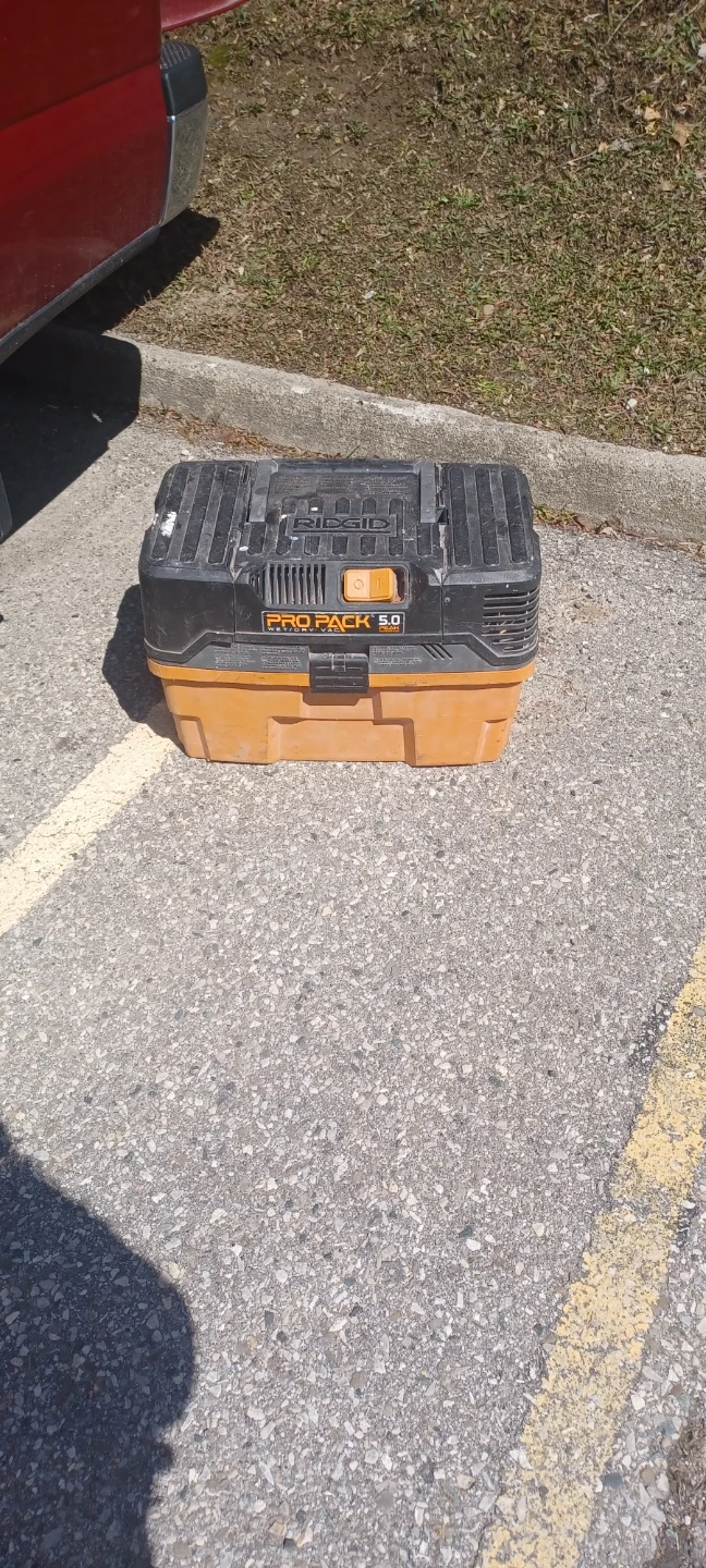 RIDGID Pro Pack wet dry vac with 5.0 peak horsepower. It's a compact and portable vacuum for your cleanup needs. This tool is great for tackling messes in the garage or workshop!