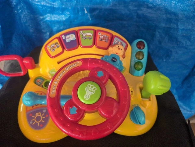 Selling a VTech Turn & Learn Driver toy! It's in great condition and ready for a new little driver. This interactive toy features a steering wheel, gear shift, and signal lights to encourage imaginative play and develop motor skills. Perfect for toddlers!