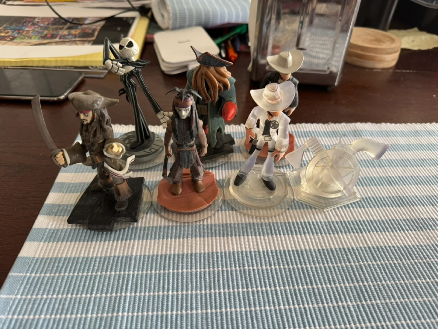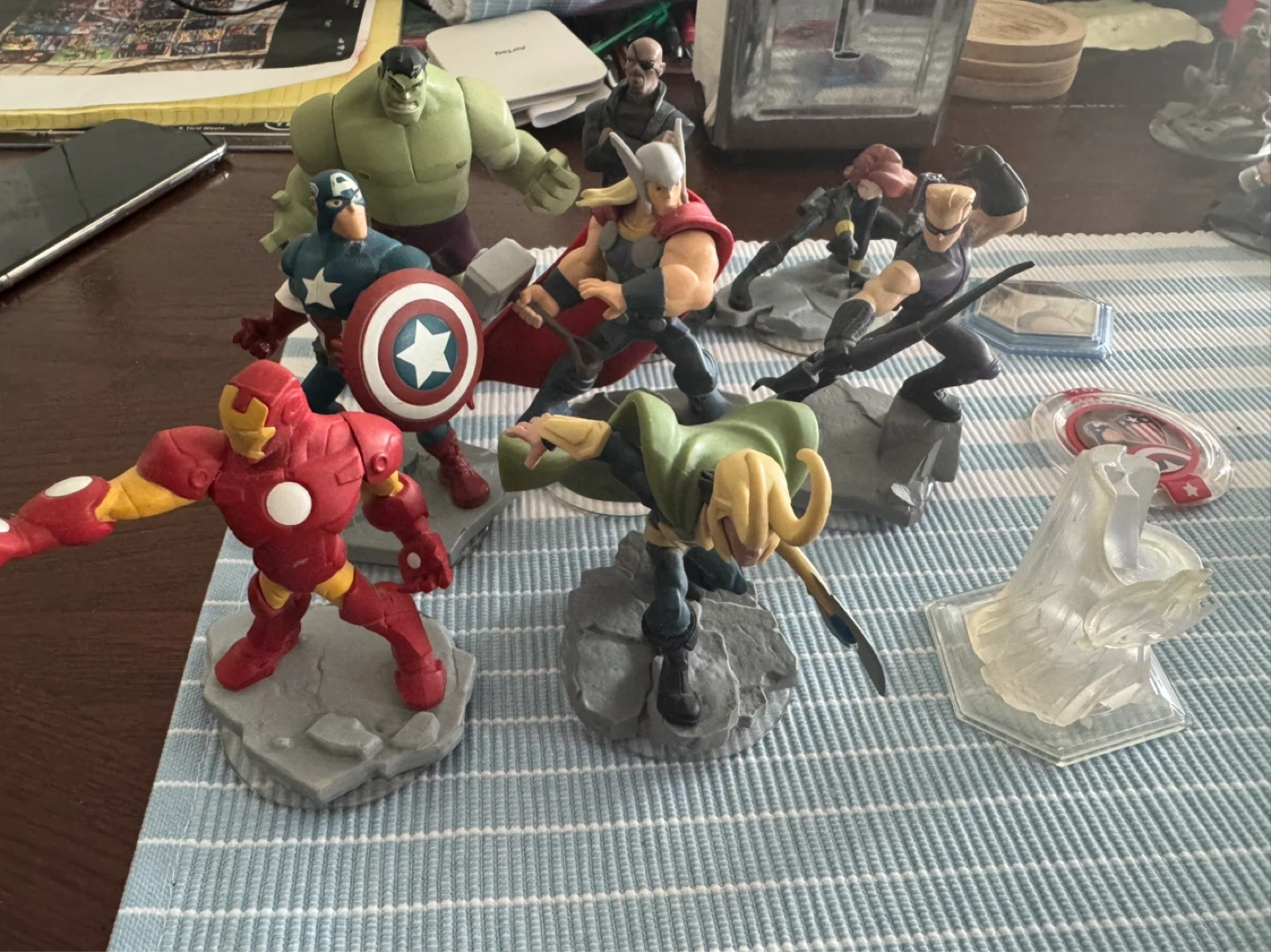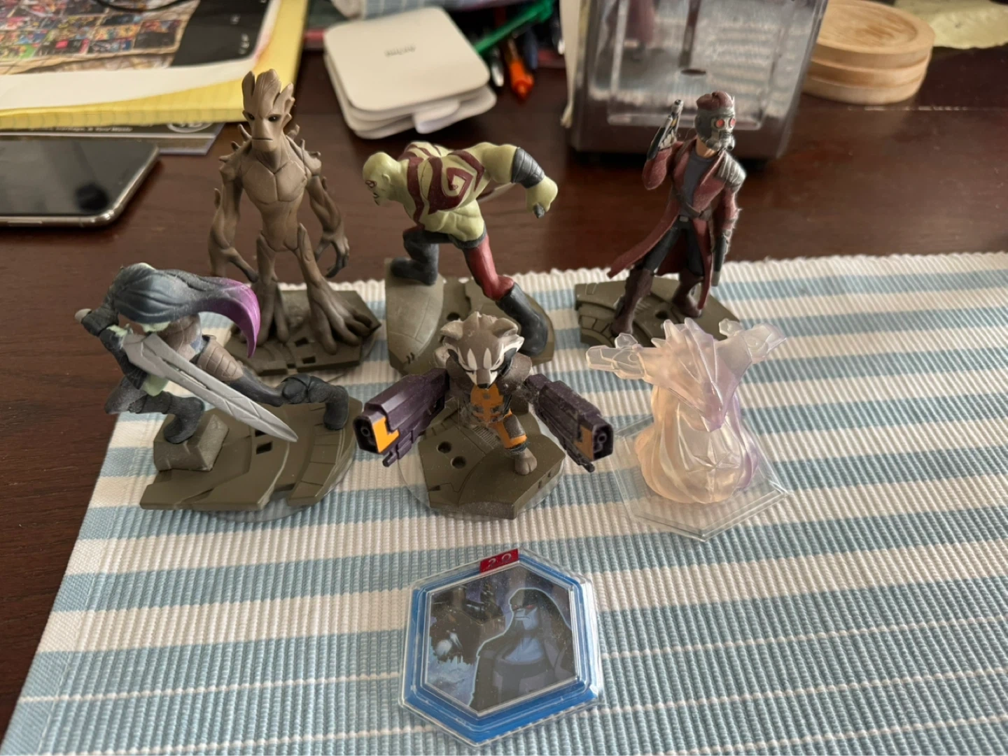 Selling a collection of Disney Infinity figures including Marvel, Pirates of the Caribbean, and Guardians of the Galaxy characters. Also includes character discs. Great for collectors or for gameplay!