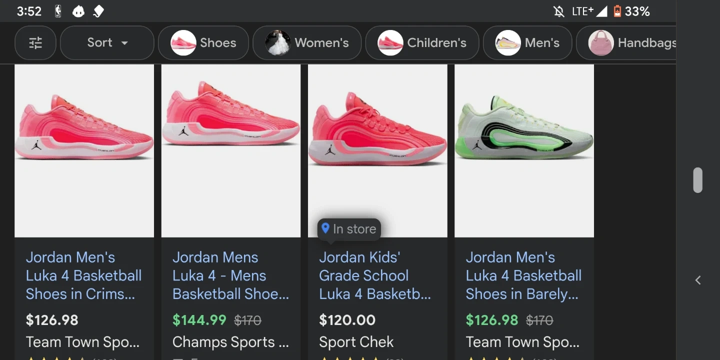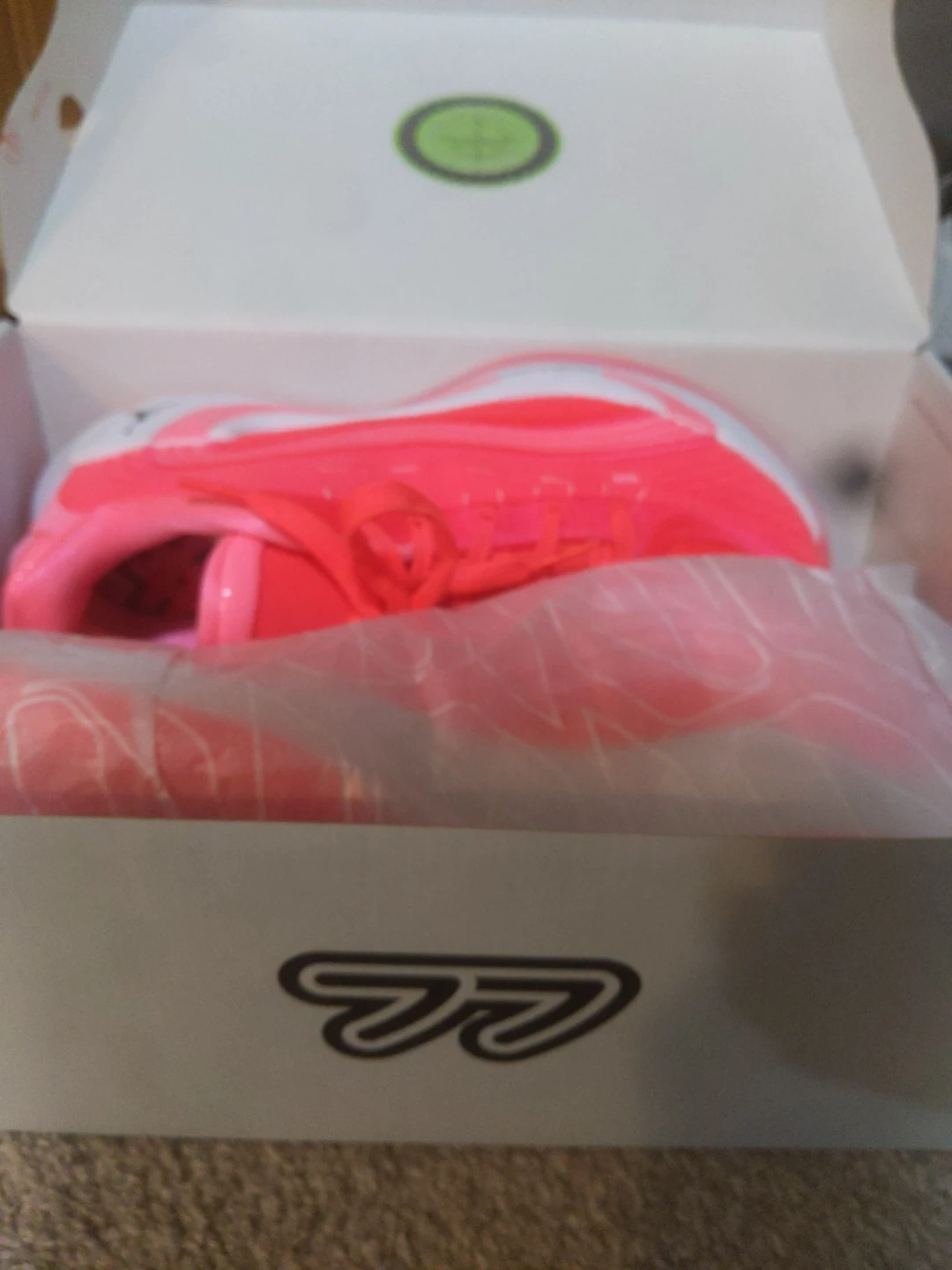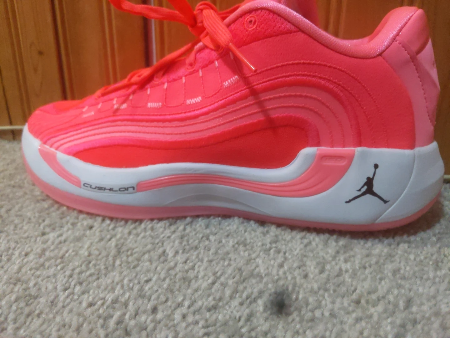 Kids' Jordan Luka 4 basketball shoes in a vibrant pink colour. These shoes feature a lace-up closure for a secure fit. They come in the original box.