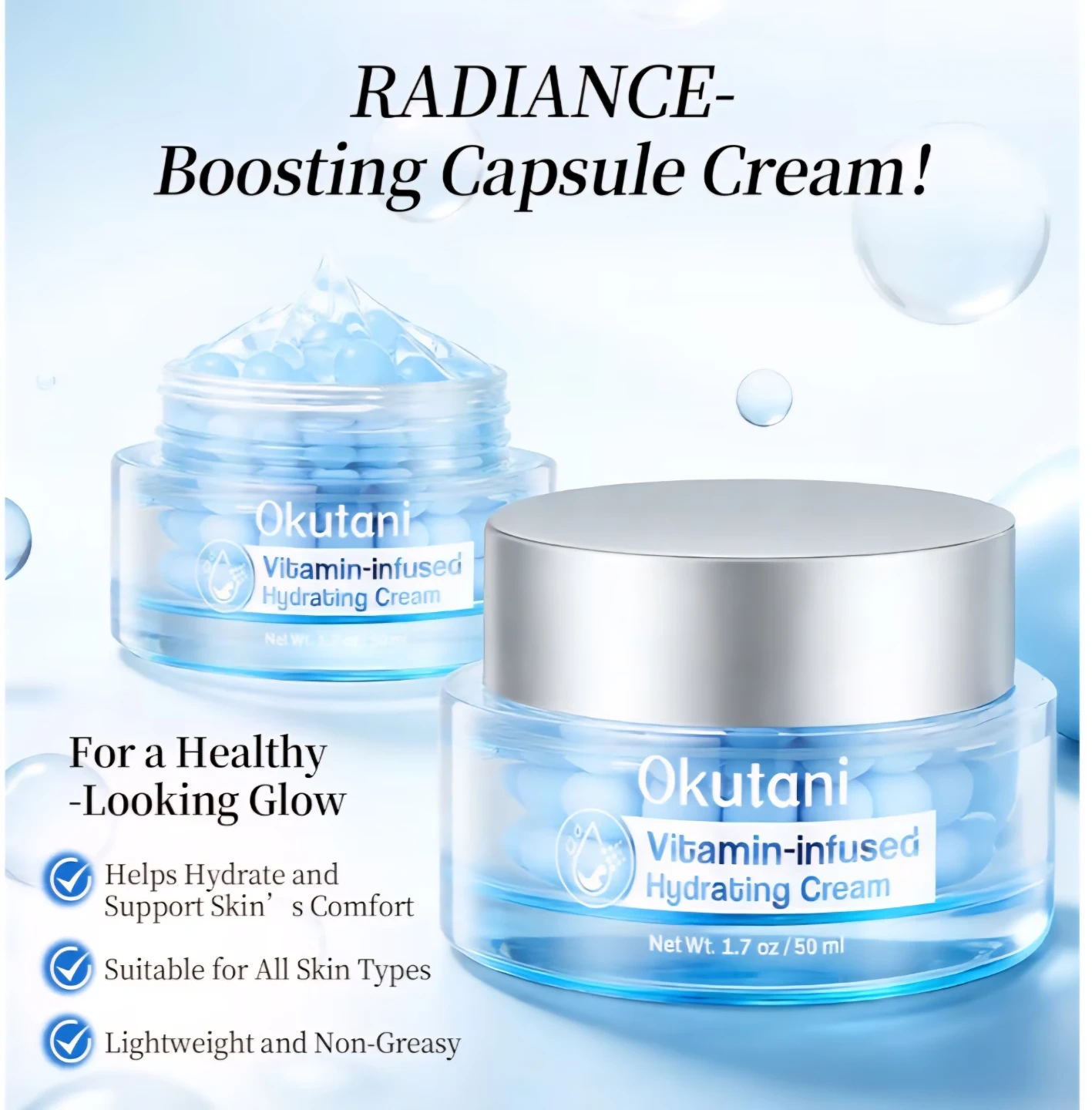 Okutani Collagen Jelly Face Cream, Deep Hydrating Moisturizer with Freeze-Dried Hydrolyzed Collagen.