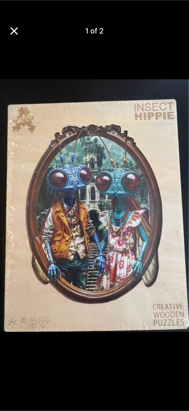Artipuz Insect Hippie creative wooden puzzle. This is a fun and unique puzzle for those who enjoy distinctive artwork. It's made of wood and comes in its original packaging. Pickup only. Cash payment at meetup. No shipping.