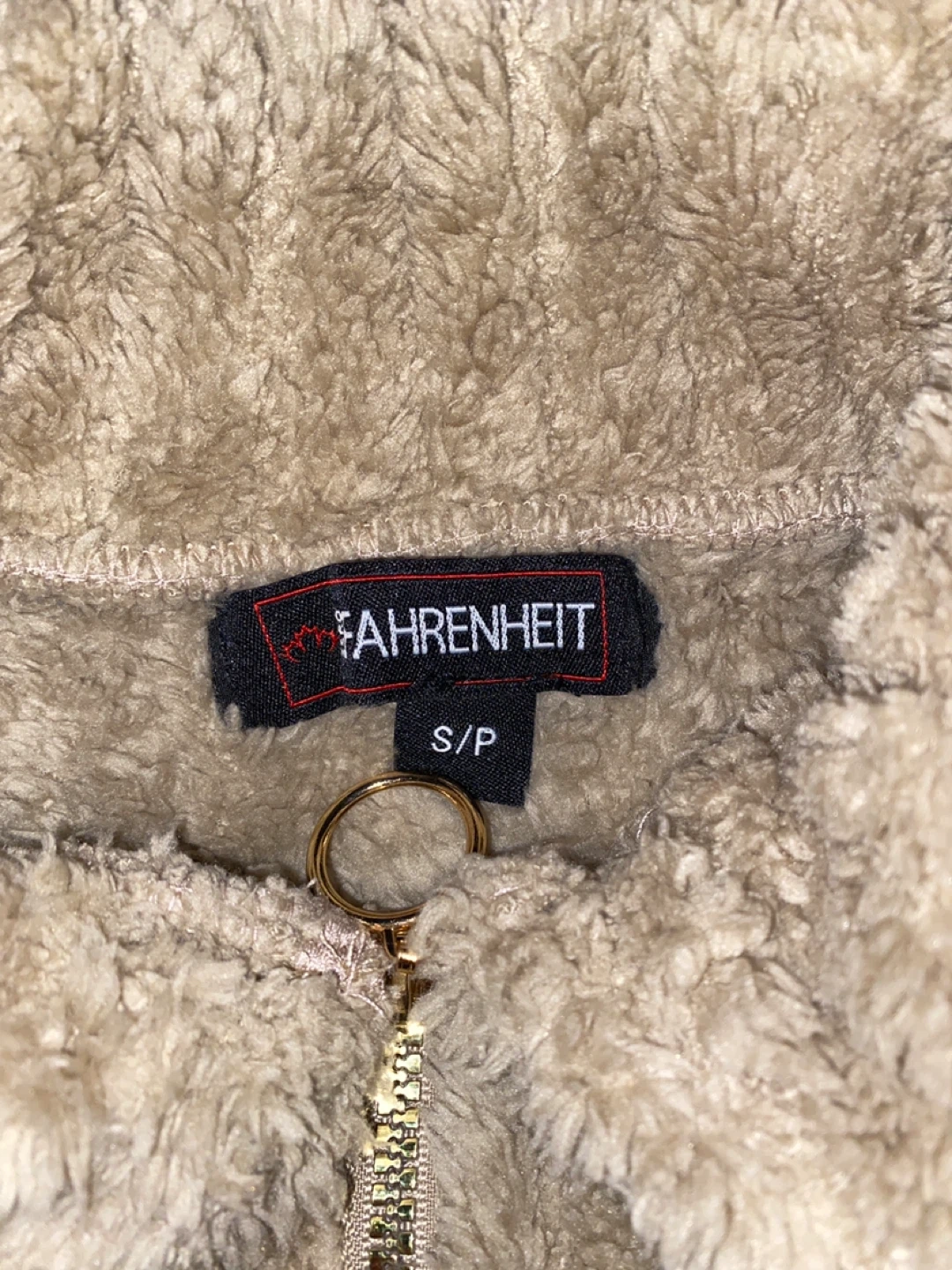 Cozy Fahrenheit zip-up jacket in a soft plush material. This warm outerwear is a size S/P. It's perfect for chilly days!