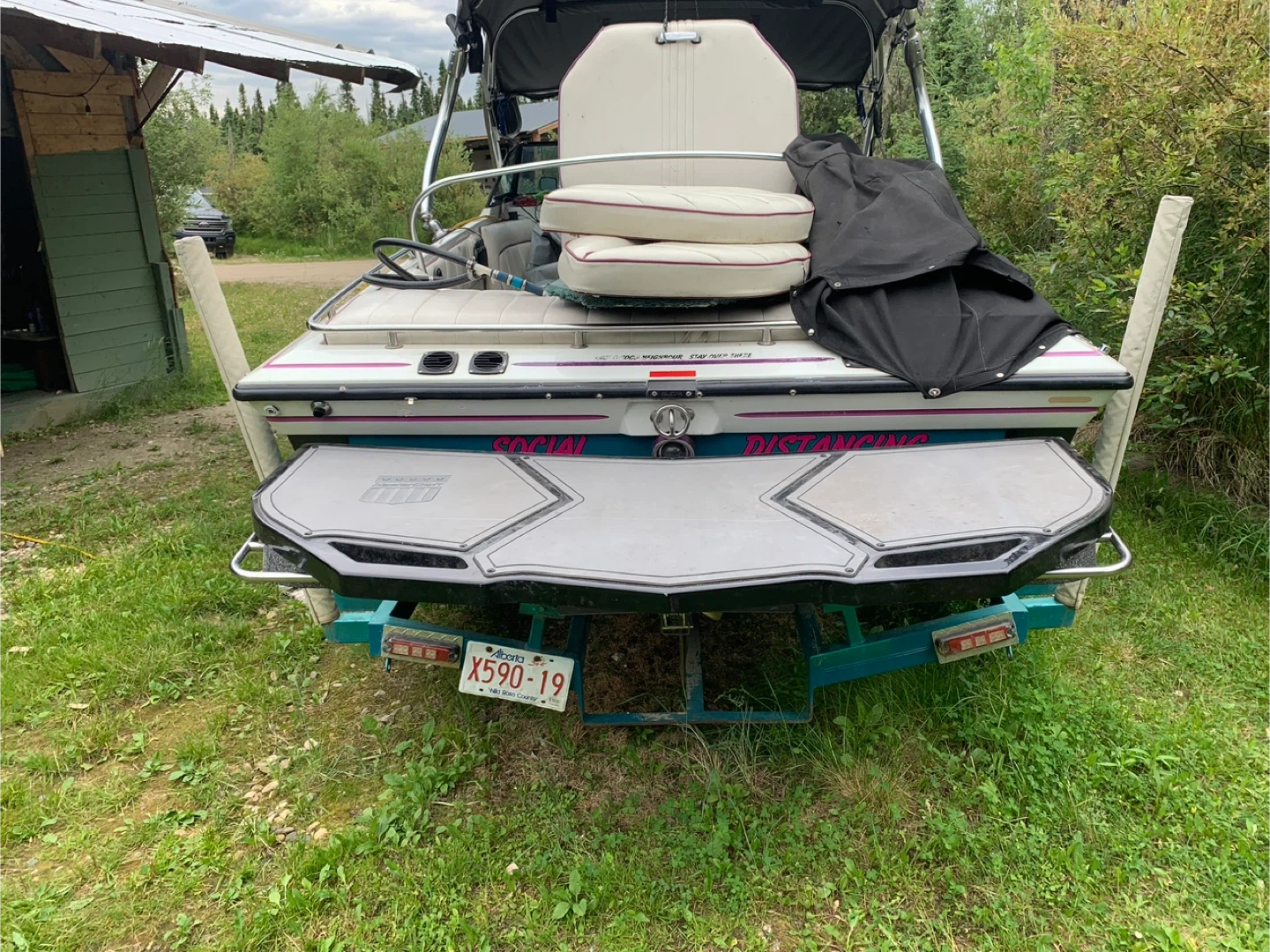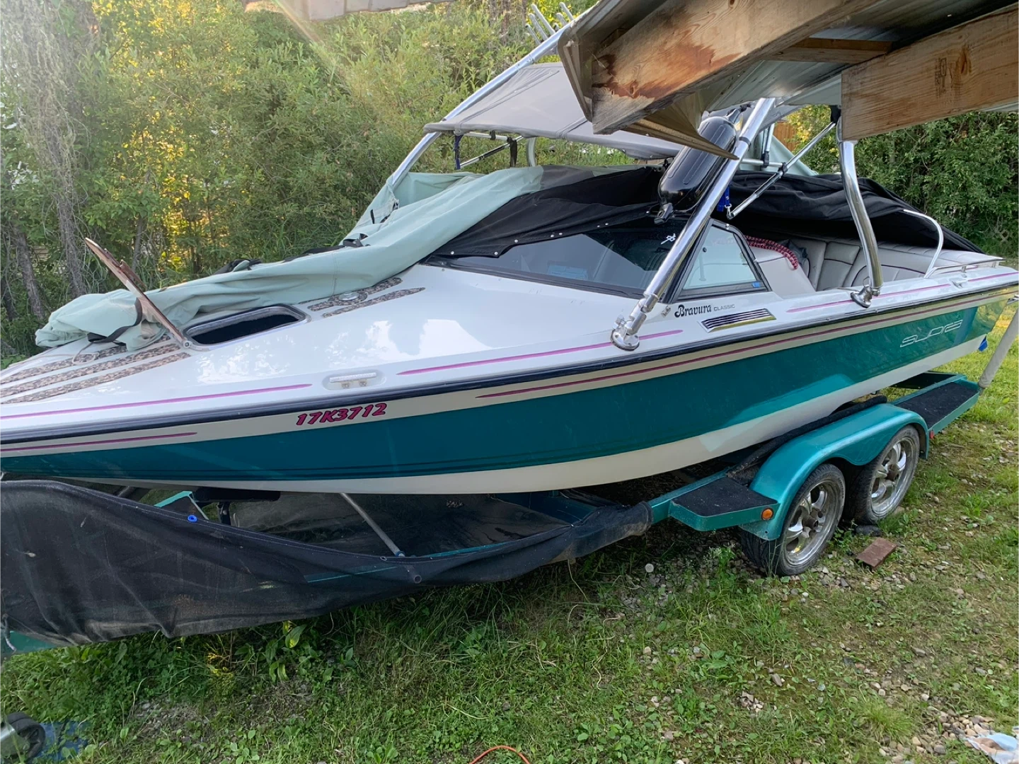 This is a Supra ski boat made to surf. , model " Bravura Classic Kevlar SupraTrac". It's white and teal with a tower and wakeboard rack. Perfect for hitting the lake! Surf tabs and ballast bags. 430 hp 7.4 454 , new MSD distributor and msd coil. This boat throws a wave equal to a 20’ wakesetter and I can prove it ! Wetsounds tower speakers. 10” sub. GPS speedometer upgrade.