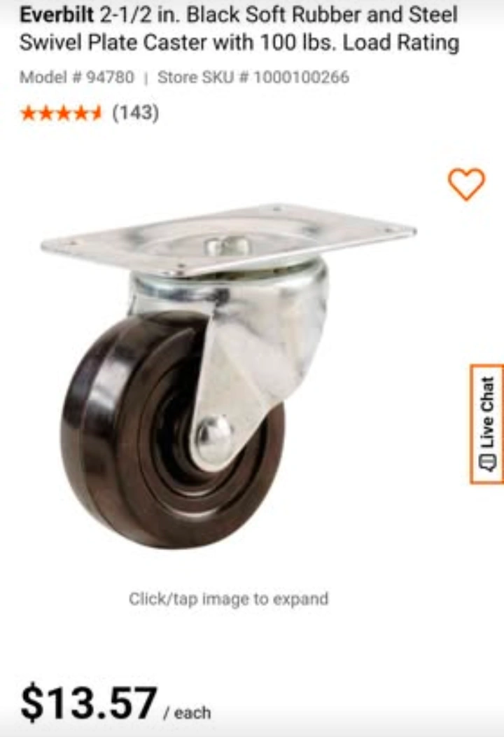 2-1/2-inch Rubber Wheel Swivel Plate Caster is great for use on smooth, hard surfaces, such as cement. The caster is designed to swivel 360° for ease of use and has a 2-3/4-inch x 3-7/8-inch plate with pre-drilled mounting holes for easy installation.