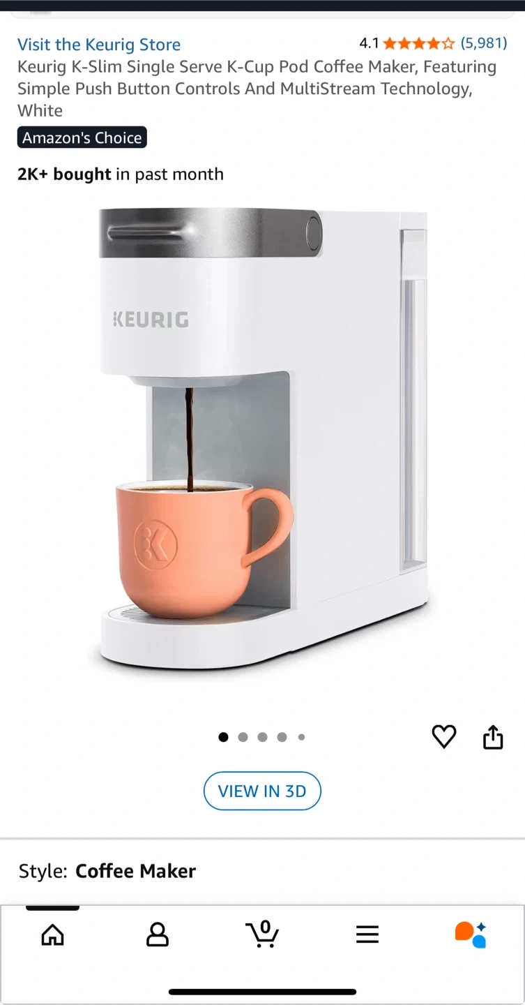 This is a Keurig K-Slim single-serve K-Cup coffee maker. It's white in colour and features simple push-button controls. The multi-stream technology brews your coffee efficiently.