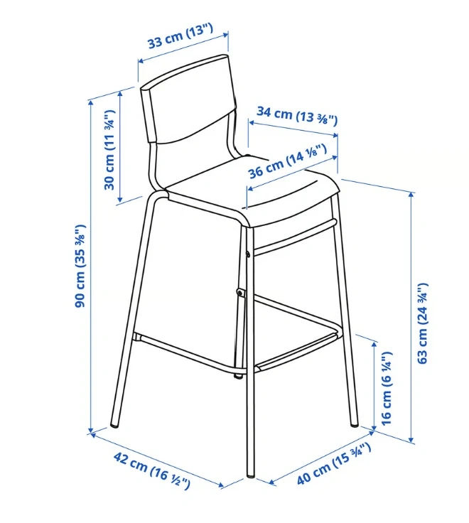 Seat height: 63 cm (24 3/4 ")
