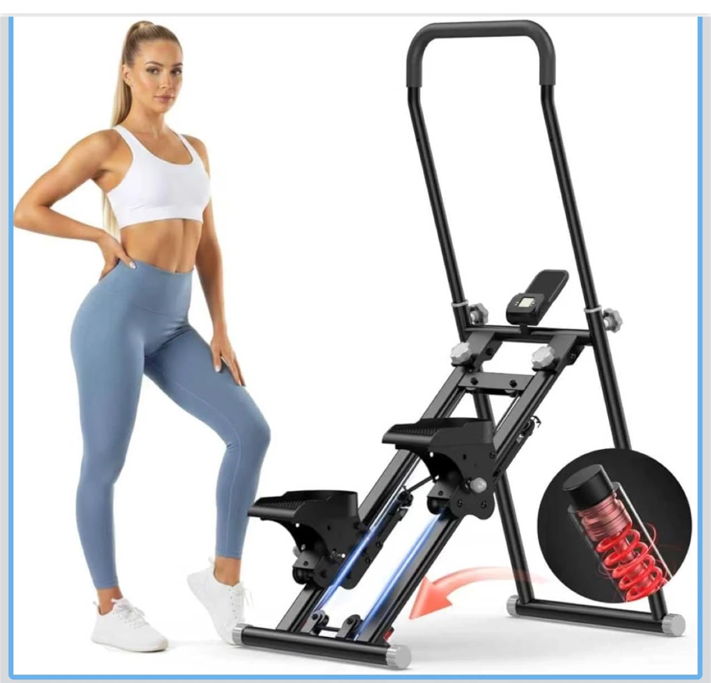 Stair Stepper for Home Gym Exercise, New Version Compact Folding Stair Climber with Quiet Shock-Absorbing Spring, Adjustable Resistance, Long Foam Grip, Stairmaster for Full-Body Workout Equipment
