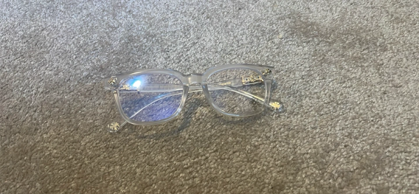 Selling a pair of Chrome Hearts eyeglasses. They're in great condition and ready for a new owner! The frames are a stylish clear colour. Open to offers so shoot anything
