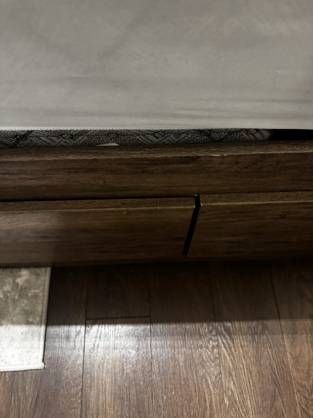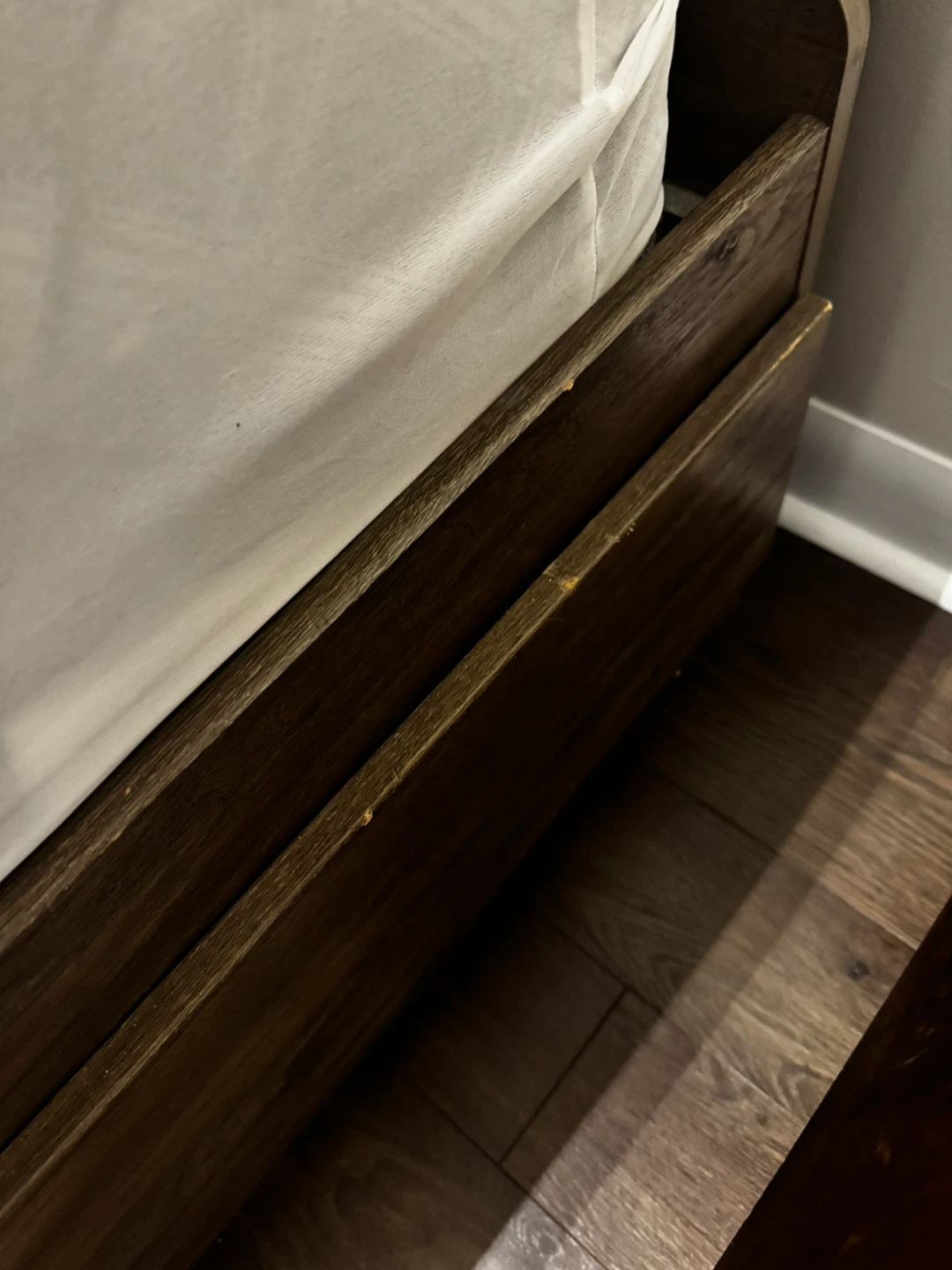 This bed frame is queen size and in EUC. It features 6 built-in storage drawers. It's a sturdy and practical addition to any bedroom.