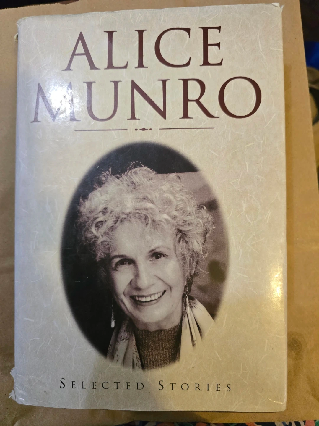 This is a collection of selected stories by Alice Munro. The book has a dark brown textured hardcover. It contains various captivating narratives.