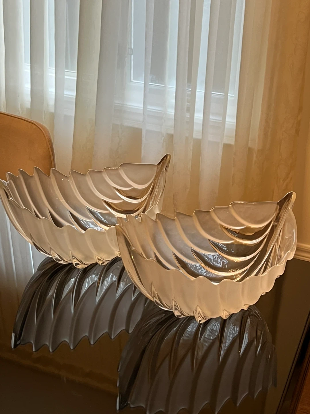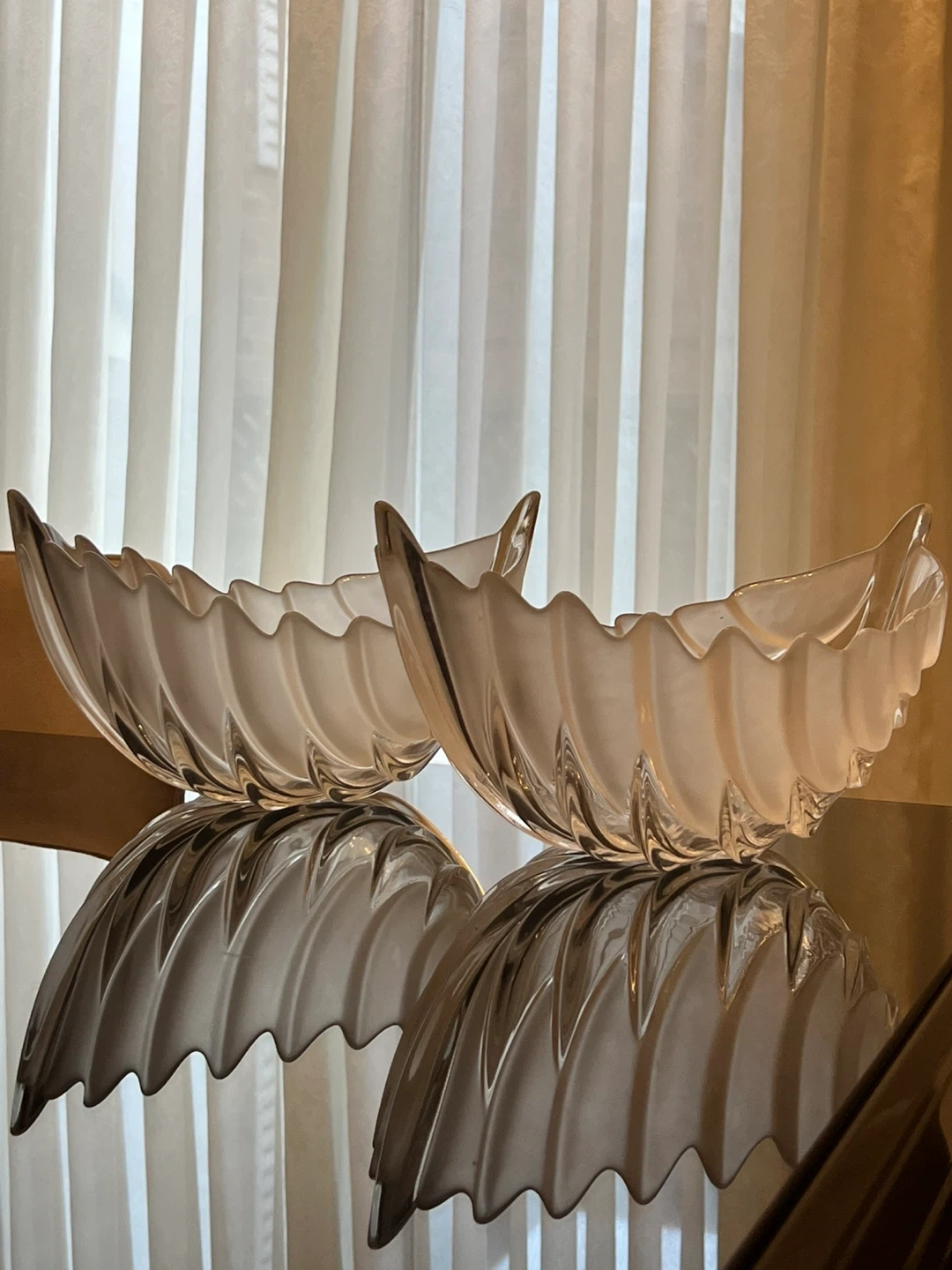 Set of 2 Frosted Glass Leaf Design Serving Bowls