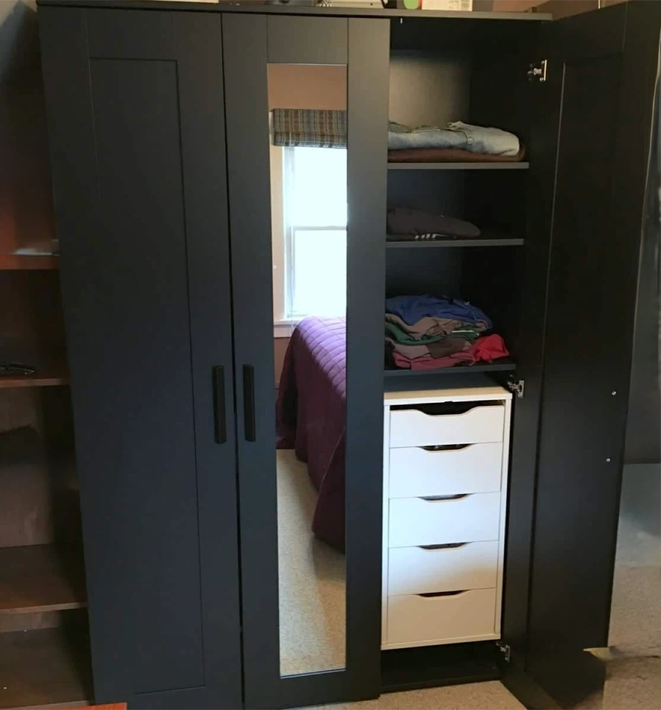 Ikea-Brimnes black 3-Door Wardrobe with Mirror