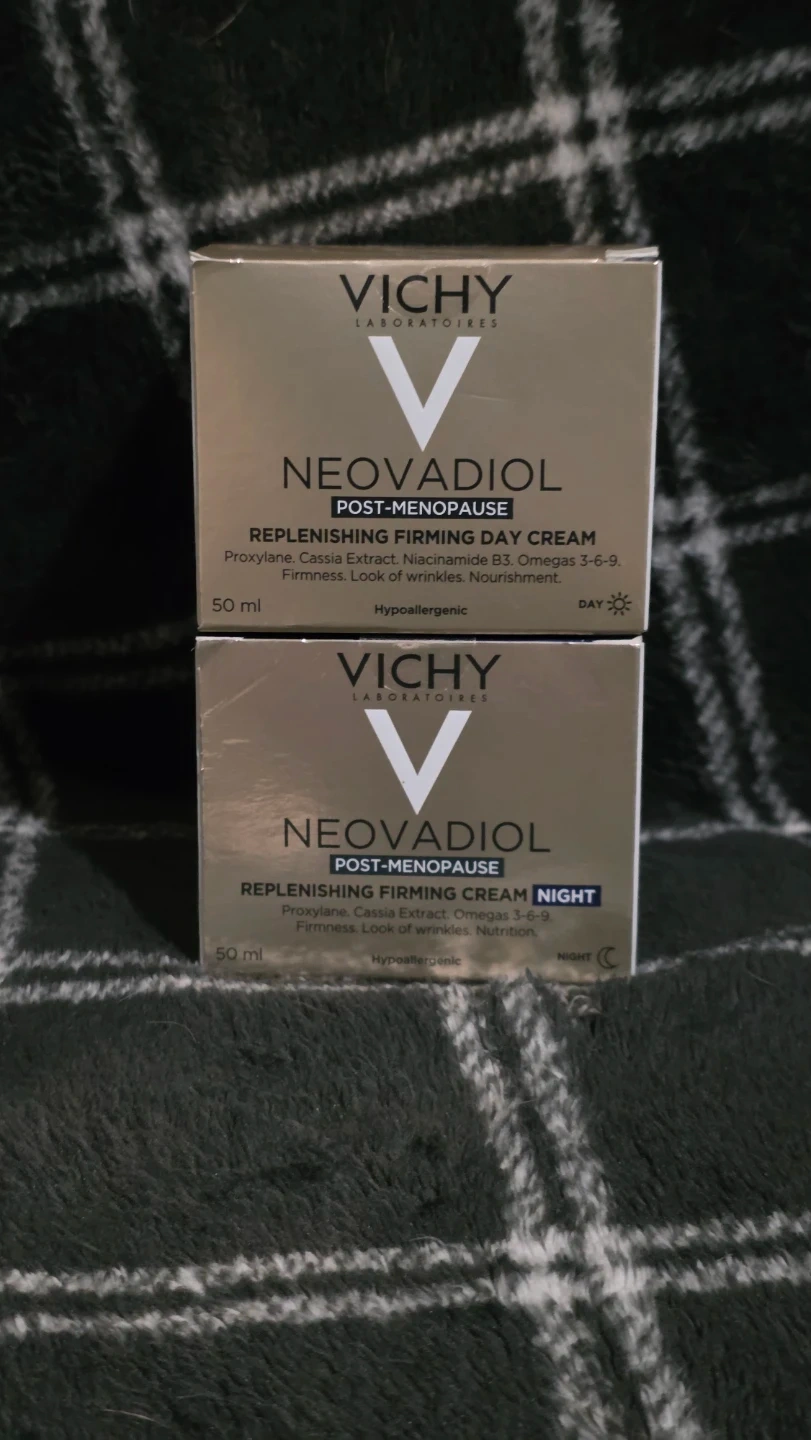 This set includes Vichy Neovadiol Post-Menopause Day and Night Replenishing Firming Creams. Each jar is 50 ml. Formulated with Proxylane, Cassia Extract, Niacinamide B3, and Omegas 3-6-9. Hypoallergenic. $40 for one, $80 for both. Brand new, still sealed. Price can be negotiated.