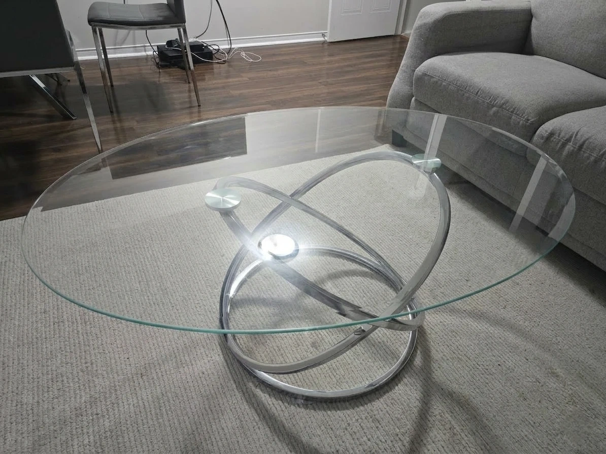 Glass Oval Coffee Table with Chrome Base