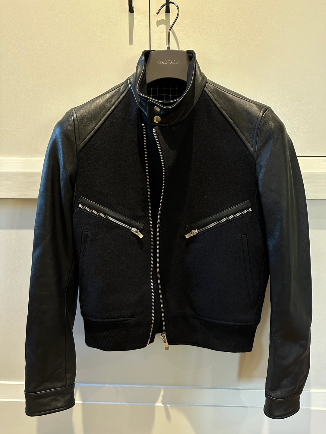 The Kooples Leather and Wool Bomber Jacket