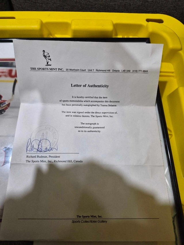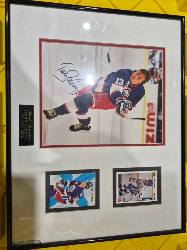 Teemu Selanne Rookie Cards and Autographed Photo Display