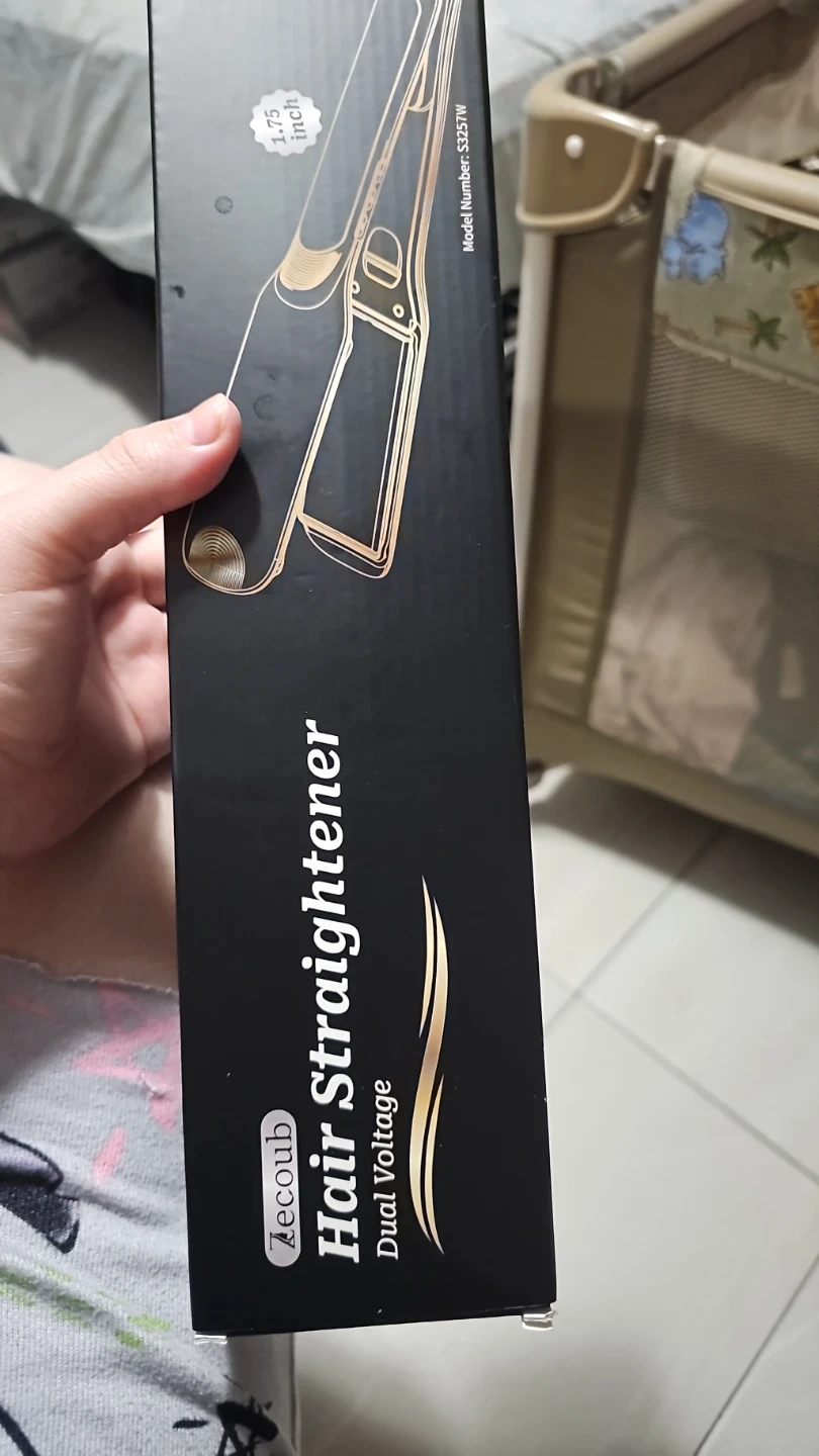 This is a Zecoub hair straightener. It features a 1.75 inch plate size and dual voltage functionality. This straightener is designed for effective hair styling.