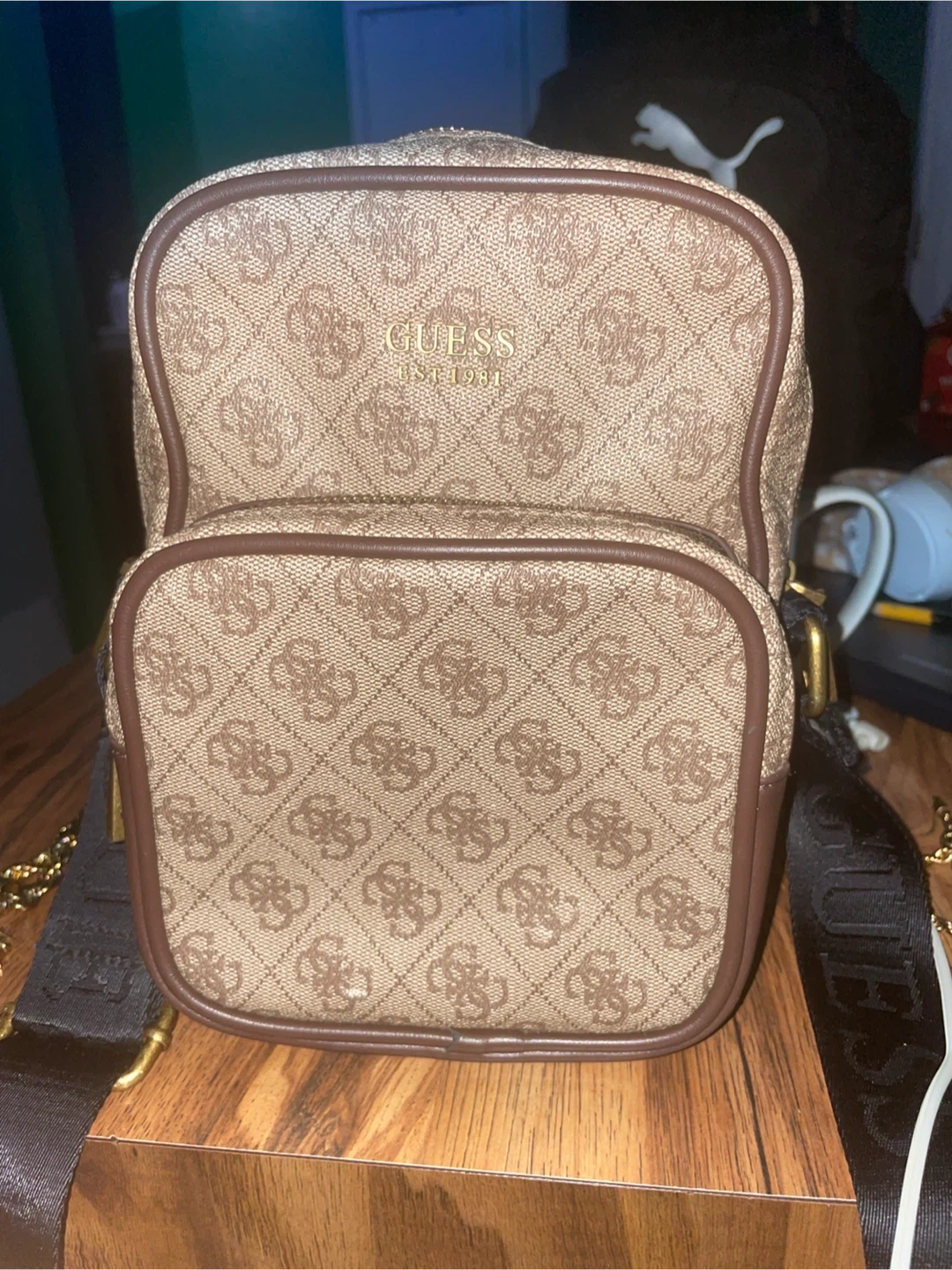 This Guess crossbody bag is in great condition and ready for a new adventure! It features a stylish brown pattern and a convenient size for carrying your essentials