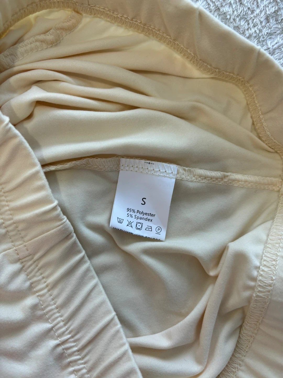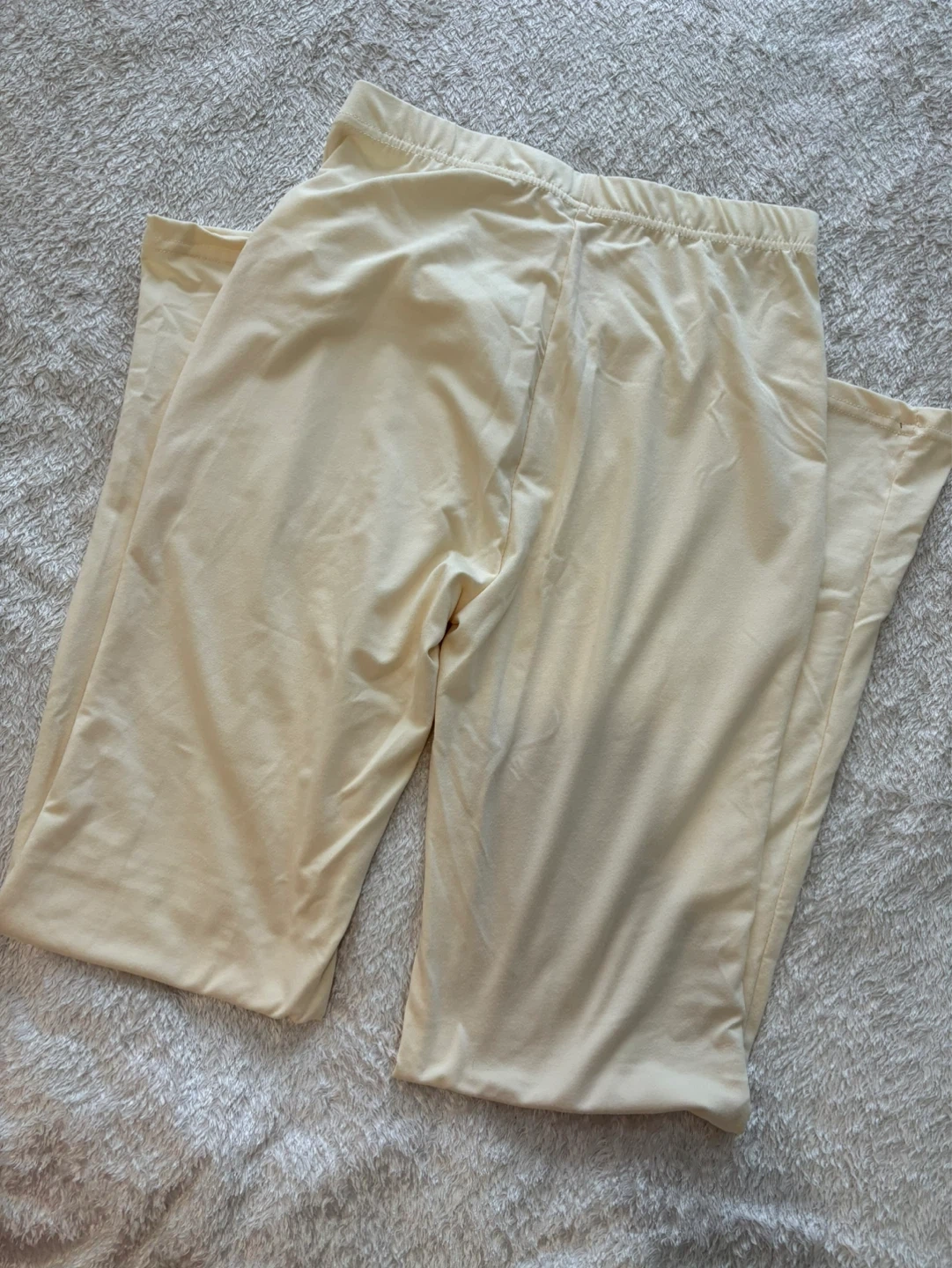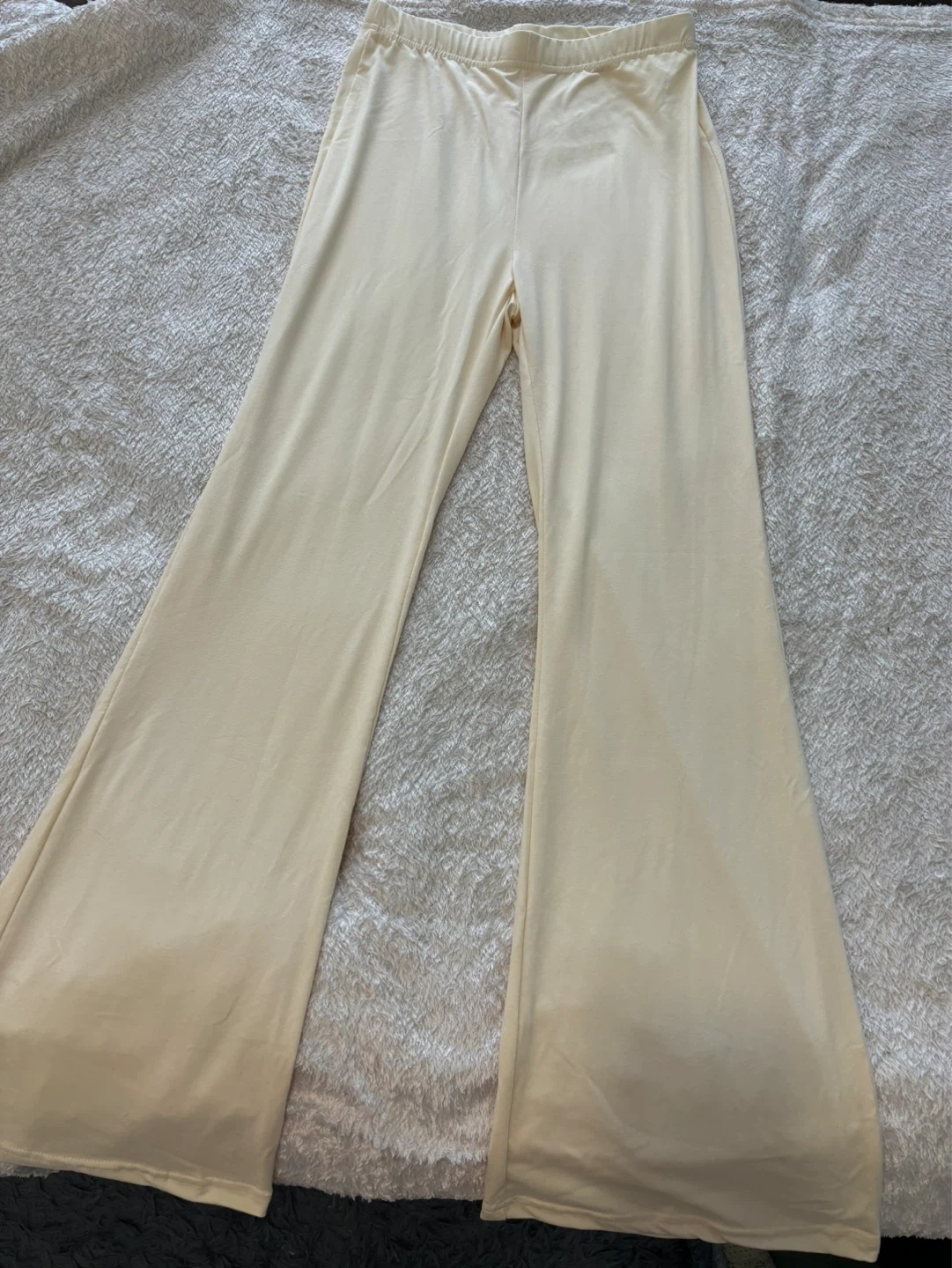 Cream coloured flared leggings. Size small. Made with 95% polyester and 5% spandex.