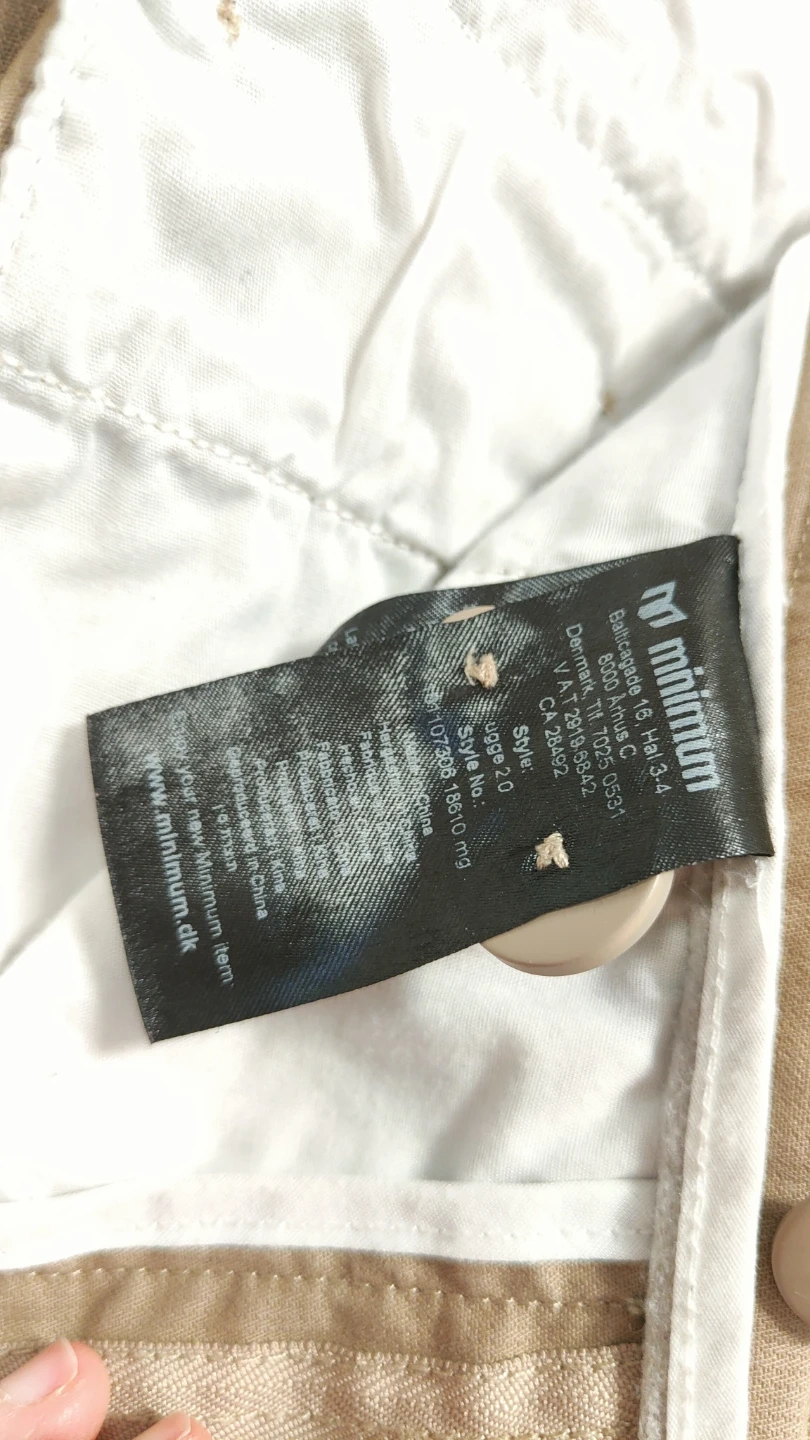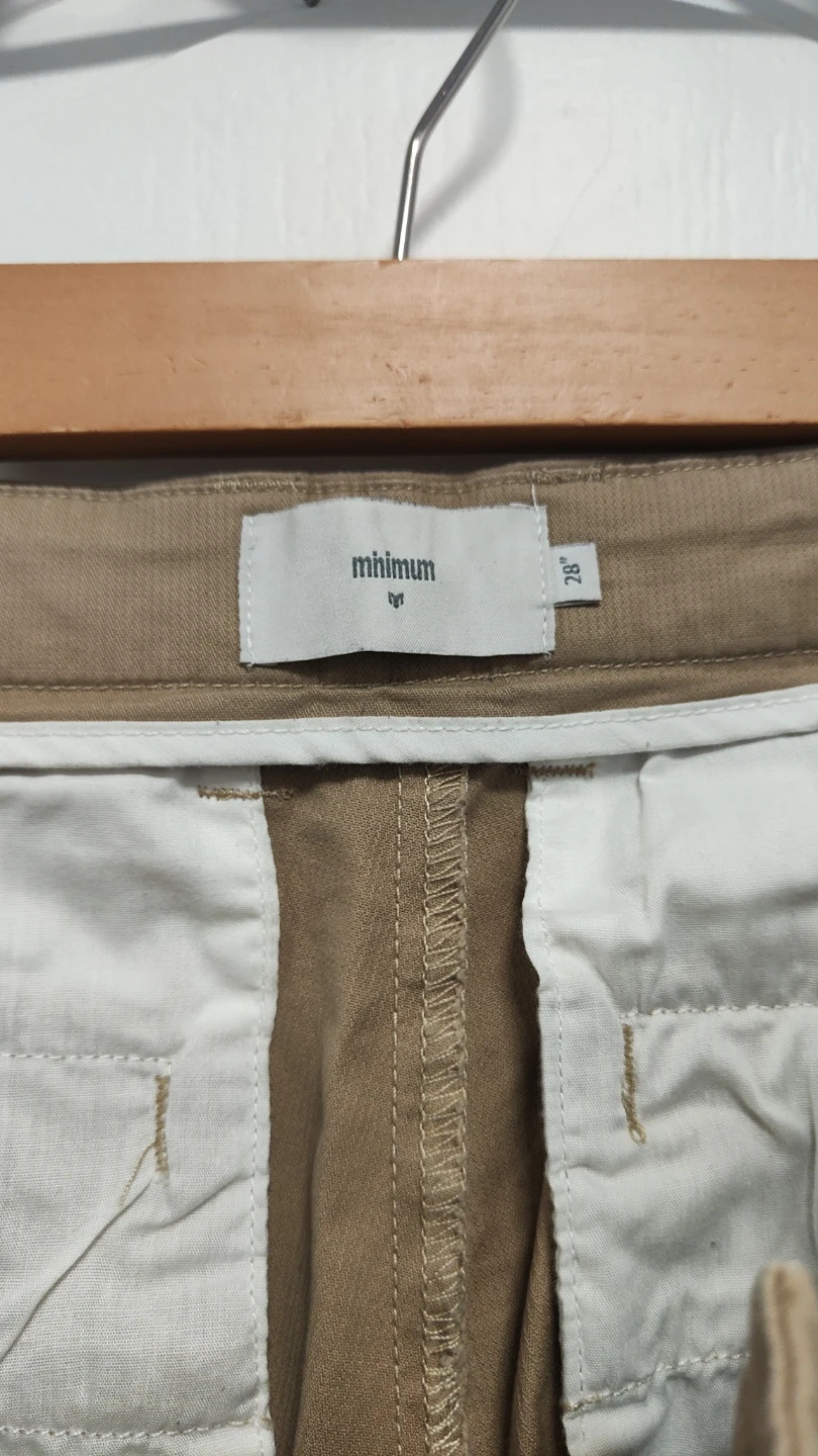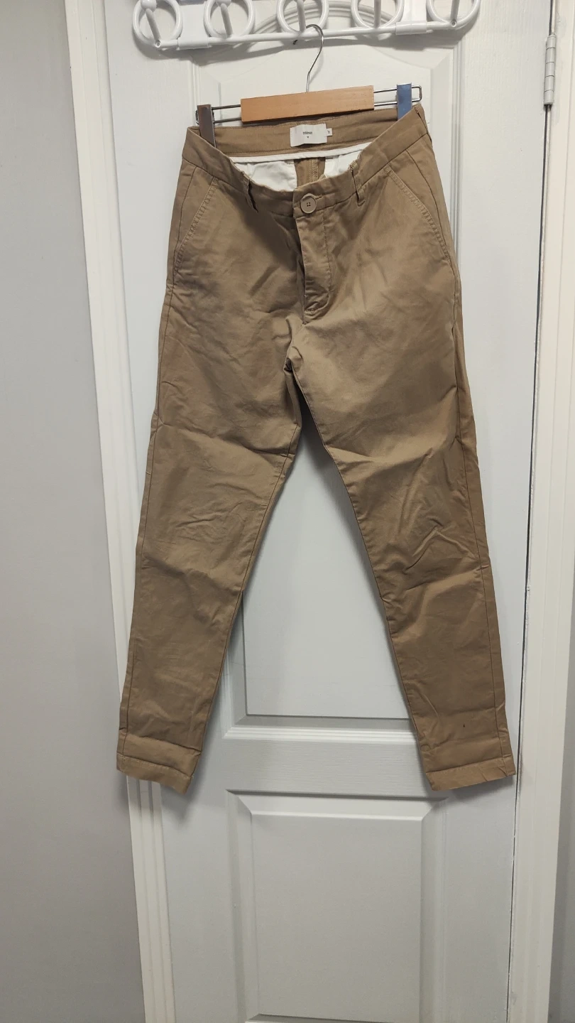 These khaki chinos are from Minimum. They're a size 28 waist. Classic style pants made for everyday wear.