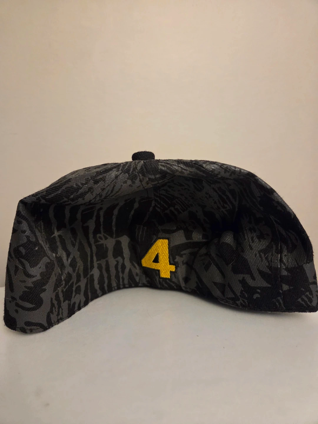 Monster Energy hat with a grey and black Monster pattern. Features the iconic Monster Energy logo and the number 4 embroidered on the back.