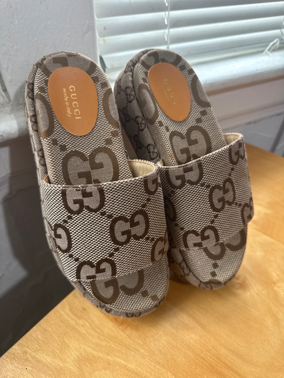 Buy & SellGucci Platform Slides Size 38Gucci Platform Slides Size 38$350Selling a pair of Gucci sandal size 38. Like new conditionConditionLike newSize38BrandGucciWHERE TO MEETCheck LocationView MapSELLERverifiedAtongDowntown851 review1 chats·3 favorites·65 viewsSEND CHAT TO SELLERHi Atong! I’m interested in your listing.Hi Atong! I’m interested in your listing.Get the Karrot app to chatSign In to chat